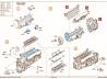 Der Motorblock mit separaten Zylinderköpfen besteht aus einer Vielzahl von Teilen, jede Schraube, jede Leitung ist vorhanden. Damit man hier nicht einfach nur Teile zusammenpappen muss hat Eduard auch ein paar einfache Aufgaben für uns vorgesehen. Neben einigen Bohrungen sind diverse Leitungen aus Draht anzufertigen. Benötigt werden meist Stücke mit einem Durchmesser von 0,4mm, es gibt auch einige Drähte von 0,3mm und 0,5mm, die man bereithalten sollte (Eduard tut sich anscheinend schwer damit passendes Material beizulegen). Meist muss man die Drähte kunstvoll im Raum verlegen, eine Abwicklung ist in der Anleitung nicht vorhanden. Am Besten nimmt man weichen Draht wie z.B. Lötzinn. Der Zusammenbau erstreckt sich über 20 Baustufen. Damit man nicht gänzlich den Überblick verliert, sind bei einigen kritischen Bauteilen mehrere Ansichten vorhanden, was wohin gehört und mit welchen anderen Teilen diese im späteren Verlauf zusammenpassen müssen.