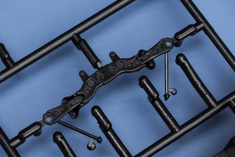 Der Bausatz stammt urspünglich aus dem Jahre 2005 und war in drei Ausführungen erhältlich. Neben der hier gezeigten Rallye-Version gab es noch eine normale Straßenversion und einen Polizeiwagen. Der Bausatz besteht aus ca. 118 Einzelteilen, die in Weiß, Schwarz und in Chrom gespritzt sind. Die Reifen sind aus Gummi und mit einem sehr überzeugenden Stollenprofil versehen. Hasegawa hat außerdem ein großzügig bemessenes Stück Kunststoffgewebe beigelegt, welches für den Kühlergrill benötigt wird. Da bleibt noch jede Menge für andere Zwecke übrig. Neben dem normalen Decalbogen liegt noch ein weiterer Bogen mit Metallstickern bei, dieser enthält die Rückspiegel, ein paar Embleme sowie zwei kleine Lüftungsgitter, die an der Heckklappe angebracht werden. Die für die Rallyeversion benötigten Teile befinden sich an ein paar extra Rahmen, andere Teile wiederum wurden ersetzt (Frontschürze, Sitze, Felgen usw.).