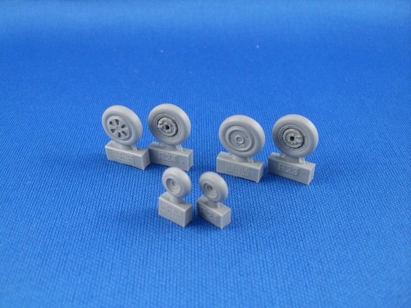 Mit diesem Set lässt sich das Fahrwerk der MiG-21MF von Eduard verfeinern. Das Set selber besteht aus sechs Rädern und einem Bogen mit Maskierfolie. Die Räder sind so gut detailliert, dass sogar die Nummern auf den Reifen lesbar sind. Weiterhin positiv ist die Tatsache, dass zwei Versionen der Räder für das Hauptfahrwerk beiliegen: eine frühe sowie die spätere und bekanntere Ausführung. Nichtsdestotrotz ist etwas Eigeninitiative erforderlich. Diese beschränkt sich aber nur darauf, Metalldrähte zu biegen und zu verkleben.
