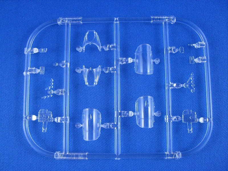 Spritzlinge D und E: "D" enthält das Cockpit, das Fahrwerk sowie diverse Kleinteile. Alle Teile sind fein detailliert und geben auch "out-of-box" ein passables Bild ab. Für Spritzgussverhältnisse ist das Cockpit sehr detailliert. Sehr schön sind auch die Starthilfsraketen, die ebenfalls im Bausatz enthalten sind. Super! "E" enthält die Klarsichtteile für das Cockpit sowie für den Fahrwerksbereich. Auch diese sind in Sachen Detaillierung und Qualität spitze.