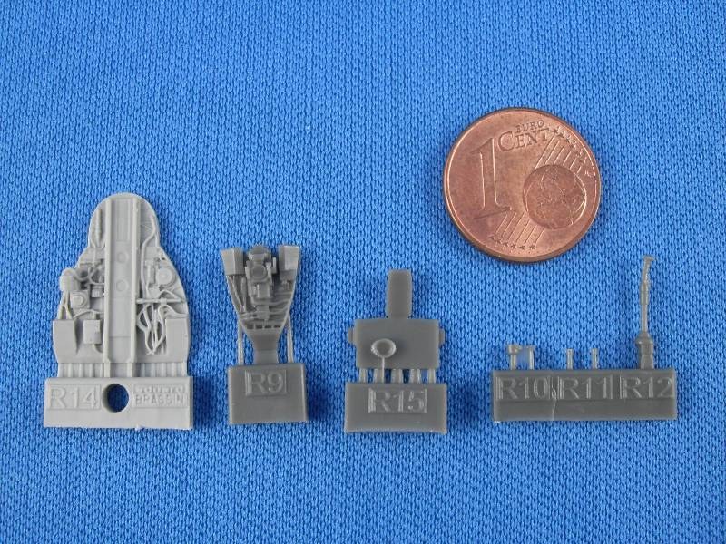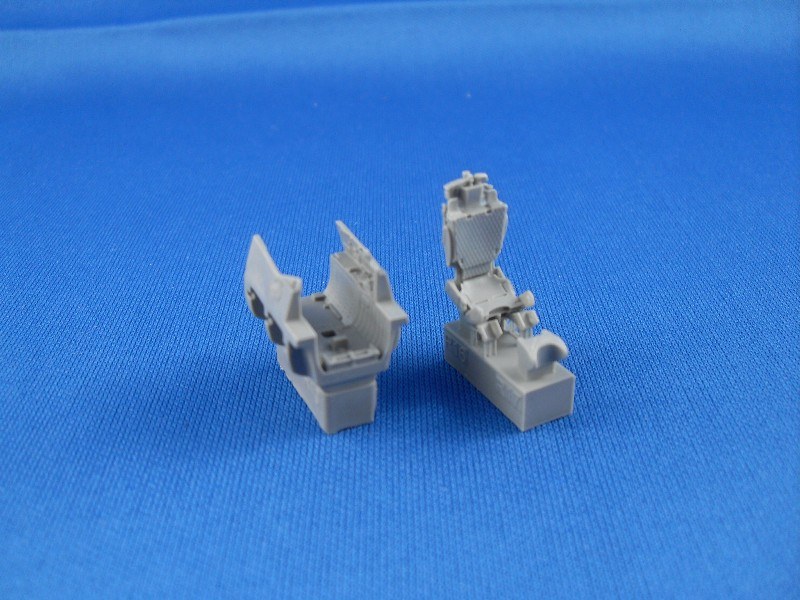 Obwohl das Cockpit der MiG-21MF von Eduard von Haus aus sehr gut und fein detailliert ist, kann noch eins drauf setzen und kommt um dieses Set der Brassin-Serie nicht herum. Wie der Titel schon verrät, ist dieses Cockpit-Set für die Abfanjägervariante der "MF" gedacht. Das Set besteht primär aus drei großen Resinteilen (Sitz, Wanne und Rückwand) sowie diversen Kleinteilen wie Amaturenbrett und Steuerknüppel. Ergänzt wird dieses von einem Mikrofilm für das Head-up-Display (HUD) sowie einer farbigen Fotoätzplatine, welche nicht identisch ist mit der aus dem ProfiPack! Das vorliegende Set ist dermaßen fein detailliert, dass die Darstellung am Modell überzeugen muss und auch wird. Selbst die kleinsten Nieten und Kabelverbindungen sind nachempfunden worden. Daumen hoch!