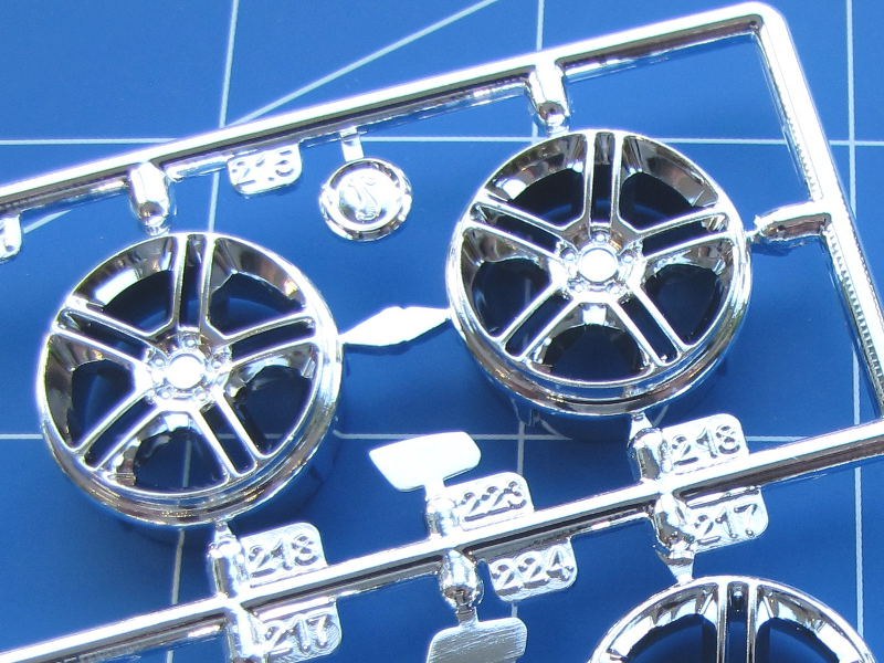 Die 116 Teile des Kits sind gut in dem etwas mehr als A4 großen Karton verpackt. Zum Inhalt gehören neben dem 19seitigen Bauplan die mehrteilige, aus rotem Kunststoff gespritzte Karosserie auf zwei Rahmen, das Chassis, Interieur sowie die Motorenteile in Hellgrau auf insgesamt zehn Spritzrahmen. Die Klarteile der Scheiben und Scheinwerfer sind an einem Ast, Felgen, Spiegel, Auspuffrohre und Embleme liegen als verchromte Teile bei. Die Radachsen als Metallstifte sind in einer extra Tüte verpackt. Die Rahmen sind auf mehrere Tüten verteilt. Der recht große Decalbogen beinhaltet verschiedene Kennzeichen, die weißen „Le Mans" Streifen, Armaturen und verschiedene Typschilder für Motorenteile etc. Alle Teile sind sehr detailliert und von hoher Qualität. Gussgrate oder Fischhaut kommen praktisch nicht vor. Wenige Auswerfermarken befinden sich an später nicht mehr sichtbaren Stellen. Die Anforderungen an den Modellbauer sind mit Level 3 passend angegeben, der eigentliche Zusammenbau der Teile ist dabei relativ einfach, schwieriger ist sicherlich eine saubere Lackierung der Karosserie in hochglänzendem Rot. Die Details