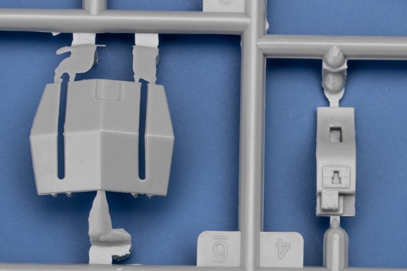 Highlight des Bausatzes ist sicherlich der oben offene, aus 35 Einzelteilen bestehende Flakturm. Die gegenüber der Ur-Version neu hinzugekommen Teile stehen in Sachen Detaillierung den "alten" in Nichts nach. Gut so denn das Geschütz ist am fertigen Modell gut zu sehen. Turm und Geschütz sind beweglich gelagert so dass man die Sache später frei positionieren kann. Die Mündungen sollte man der besseren Optik wegen vorne noch aufbohren. Wie oben schon erwähnt liegt neben dem Serienturm auch alternative Teile für einen modifizierten, etwas niedrigeren Turm bei. In Spielberger's Militärfahrzeuge zum Panzer IV konnte ich darüber aber nichts finden (die Flakpanzer sind nur in den älteren Auflagen dieses Buches behandelt).