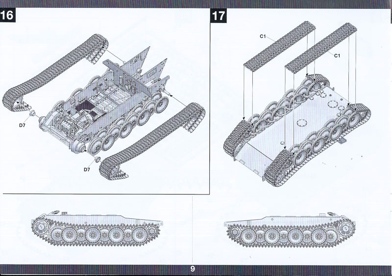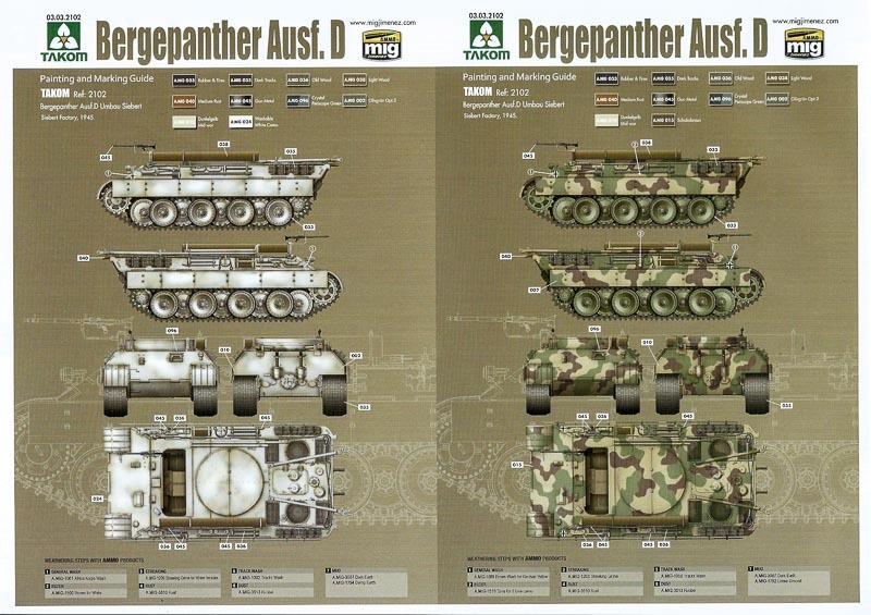 Der etwa DIN A 4 große, 30 Seiten im Querformat umfassende in schwarz-weiß (im hinteren Bereich farbig) gehaltene, englischsprachige Bauplan ist Step by Step übersichtlich angelegt und auch für Anfänger schnell und einfach verständlich. Auf Seite 26 und 27 des Bauplanhefts befinden sich Markierungs,- und Lackiervorschläge inclusive Farbangaben von Ammo by MIG für vier im Einsatz befindliche Fahrzeuge. Auf Seite 29 und 30 befinden sich Angaben zur Lackierung des Innenraums.