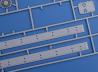 Der Kartoninhalt: Nachdem ich nun den Deckel des 38,0 x 25,0 x 12,6 cm großen Kartons geöffnet habe, schaue ich in eine bis oben gefüllte Schachtel mit einzel verpackten in hellgrauen Kunststoff gegossene Rahmen, zwei Kettenmontagehilfen aus schwarzem Kunststoff, einen kleinen Markierungsbogen, eine kleine Platine mit Ätzteilen, Kupferseil in verschiedenen längen und stärken, Ketten in verschiedenen Längen & Stärken und den Bauplan. Übersicht über dier einzelnen Rahmen: