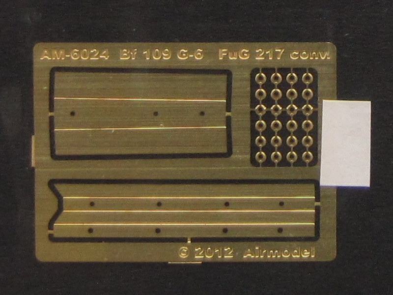 Der UmbausatzDer Umbausatz besteht aus einer kleinen Ätzteilplatine, einen Markierungsbogen für eine Bf 109 G-6, sowie Zeichnungen zum Umbau und der Lackierung des Modells. Die Zeichnungen sind leicht verständlich und sollten für jeden zu meistern sein, der etwas Erfahrung im Umgang mit Ätzeilen hat. Der Markierungsbogen besteht aus einem durchgehenden Trägerfilm. Jedes Teil muß daher einzeln ausgeschnitten werden. In wie weit die weißen Flächen deckend gedruckt sind, ist nicht bekannt. Im schlimmsten Fall kann auch auf andere Decals von bekannten Herstellern zurückgegriffen werden.