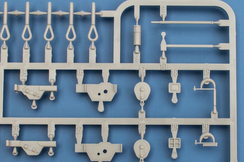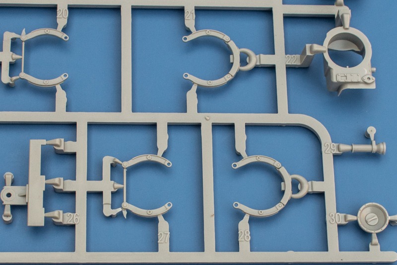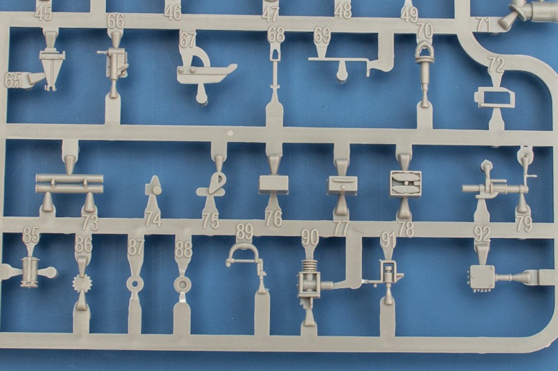 Der Zusammenbau verläuft praktisch identisch zu dem bereits vorgestellten Bausatz. Einen Unterschied gibt es allerdings bei den optionalen Teilen, hier gibt es nämlich so gut wie keine, d.h. der Zusammenbau verläuft wesentlich entspannter ohne dass man großartig überlegen muss wie es denn nun werden soll. Die vielen -1, -2 Unterbaugruppen gibt es hier nicht. Will man zumindest einen Teil des Innenraums zeigen sollte man sämtliche Luken und Klappen geöffnet anbauen. Die Anleitung gibt es zwar nicht vor, da aber alle entsprechenden Teile auch innen detailliert sind ist es kein Problem. Die Teile sind auch passend ausgeformt und man muss hier nicht anfangen die Scharniere zu schnitzen. Was die Detaillierung und Ausführung der Bauteile angeht entspricht alles der bereits gezeigten frühen Ausführung.
