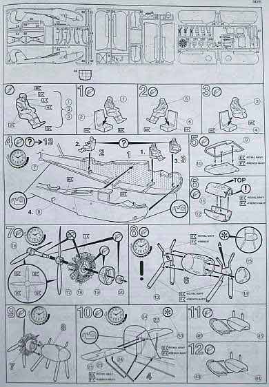 Besprechung:Bei dem Bausatz handelt es sich um das ehemalige Matchbox-Modell der Supermarine Walrus aus den 1970er Jahren. An der Form hat Revell nichts verändert, nur das „Made in England“ wurde aus den Innenseiten einiger Teile entfernt. Die Oberflächen sind mit erhabenen Blechstößen versehen, also nicht mit den sonst oft bei Matchbox üblichen, breiten vertieften Gravuren. Die Darstellung der stoffbespannten Tragflächen und Leitwerksflächen wirkt ganz leicht verwaschen-unscharf. Wie damals üblich gibt es sitzende Figuren, passend zur Walrus also drei (in der Form identische) Besatzungsmitglieder. Die sehr übersichtliche, gut gegliederte Anleitung bietet unter anderem einen ausführlichen Text zum Original und mehrere Zeichnungen zum Verspannen des Doppeldeckers (Das Deckelbild zeigt weitere Details der Verspannung an den Stützschwimmern). Lobenswert: Vorderansichten zeigen auch die Flügel- und Fahrwerksgeometrie, das ist leider noch immer die Ausnahme in Bauanleitungen. Der Decalbogen bietet Kennzeichen entweder für eine Supermarine Walrus Mk.I der Royal Navy oder eine Supermarine Walrus Mk.I der französischen Marineflieger.