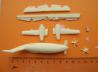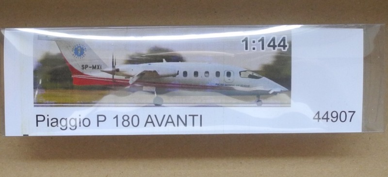 Die Piaggio P.180 Avanti ist ein Geschäftsreiseflugzeug von Piaggio Aerospace. Ursprünglich war auch Gates Learjet bei der Entwicklung dabei, aber die Amerikaner sind noch vor dem Erstflug 1986 aus dem Projekt ausgestiegen. Mit 14 m Spannweite und 14,4 m Länge bietet die Avanti Platz für bis zu 8 Passagiere oder 1860 kg Nutzlast. Die Canard-Flügel am Bug werden durch ein herkömmliches T-Leitwerk ergänzt. Die Pratt&Whitney-Turboprops liefern je 850 PS, damit sind 732 km/h Höchstgeschwindigkeit möglich, und eine maximale Flughöhe von 12.500 m, Reichweite maximal 2.637 km - aber nicht alle Maxima zeitgleich: die maximale Reichweite ist nur bei max.6 Passagieren möglich, die Reisegeschwindigkeit liegt bei 640 km/h in 11.890 m Höhe. Nicht nur die Leistungen sind für eine Turboprop sehr hoch, auch der Preis: unter 5 Mio. Euro kam man nicht in den Genuss dieses extravaganten Executive-Fliegers. Daher wurden auch nur knapp über 200 Stück gebaut, die meisten davon Avanti II mit "Glascockpit", also Flachbildschirme anstelle von Anzeigeinstrumenten (Quelle wie so oft: Wikipedia). Der BausatzWenn einige Modellbauer Berührungsängste gegenüber Resinbausätzen zeigen, dann sind solche Gustostückerln wie dieser die Ursache: Vieles fehlt, fast alles ist ungenau, und einiges sogar definitiv falsch. Zum Beispiel die Propeller: die sichelförmigen Propellerblätter passen vielleicht zu einem A400, aber die Avanti hat Gerade mit kantigem Abschluss statt einer Spitze. Bilder zeigen das Ausmaß der Tragödie: