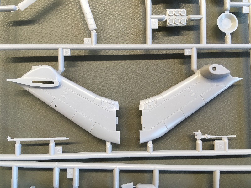 Als separates Teil ist die bootsförmige Rumpfunterseite ausgeführt, an welcher Antennen, Landescheinwerfer, Sonar und Type-A-Sonarbojenvorrichtungen angebaut werden sollen. Nächster Schritt in der Bauanleitung ist der Zusammenbau der beiden Sponsons samt Radfahrwerk. Im Bausatz werden die langen Sponsons geliefert. Linksseitig hinter dem Hauptfahrwerk werden die 24 Mk.25 marine marker launch tubes verbaut, im rechtsseitigen Sponson wird ebenfalls hinter dem Hauptfahrwerk die MAD Ausrüstung (Metallic Anomaly Detector) platziert. Das Hauptfahrwek kann nur im ausgefahrenen belasteten Zustand verbaut werden. Zwischen dem Rumpf und den Sponsons können optional zwei Torpedos angebaut werden. Was in der Bauanleitung nicht erwähnt wird ist, dass die Sponsons nicht bündig am Rumpf angeklebt werden sollten. Die Originalmaschinen weisen zwischen dem Rumpf und den Sponsonanschlüssen einen schmalen Spalt auf.