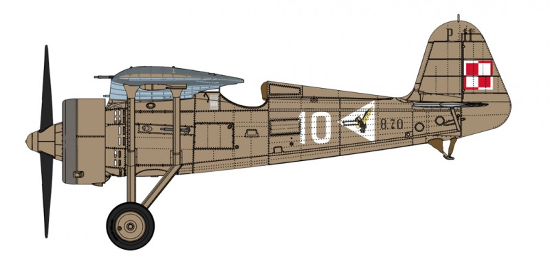 Besprechung:Die PZL P.11c war eine verbesserte Variante der P.11a-Version, die eine Weiterentwicklung der P.6-Konstruktion von Z. Puławski war. Nach den erfolgreichen Versionen P.11a und P.11b hat der PZL-Hersteller 1933 und 1934 eine verbesserte Version des Jägers mit einem neu gestalteten Rumpf und Heck entwickelt. Ferner besaß diese den neueren Bristol Mercury V-Motor und die Möglichkeit, die Bewaffnung in den Flügeln zu platzieren. Die Motorhaube wurde abgesenkt, um das Sichtfeld des Piloten zu verbessern. Zu den Änderungen an der Rumpfkonstruktion gehörte die Verlängerung des Fahrwerks bis zum Ende des Cockpits, so dass die Semimonocoque Konstruktion hinter dem Pilotensitz begann. 175 dieser Flugzeuge wurden von der polnischen Luftwaffe bestellt und der Bau begann 1934. Der größte Teil des Auftrags wurde 1935 ausgeliefert, die letzten Flugzeuge wurden 1936 fertiggestellt. Die PZL P.11c wurde 1935 in den Jagdgeschwadern der polnischen Luftwaffe in Dienst gestellt und waren ihre wertvollste Ausrüstung während des Polenfeldzuges 1939. Diese Flugzeuge dienten im 1. Luftregiment (AR) in Warschau, 2. AR in Krakau, 3. AR in Posen, 4. AR in Torun, 5. AR in Lida und 6. AR in Lwów und nahm an der polnischen Verteidigung vom 1. September 1939 bis zur Räumung durch den sowjetischen Angriff vom 17. September teil. Evakuierte Flugzeuge wurden in die rumänische Luftwaffe aufgenommen, wo sie als Basis der dort gebauten P.11f-Version dienten. Nur ein PZL P.11c überlebte bis heute. Sie ist in der Ausstellung des Polnischen Luftfahrtmuseums in Krakau zu sehen.