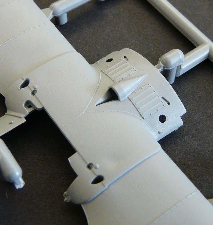 Der Motor oder besser die Motoren sind, im Rahmen dessen, was Plastikspritzguss abbilden kann, auch erstklassig zu nennen. Für den Umlaufmotor gibt es zwei unterschiedliche Fronthälften. Die eine wird für die Darstellung des Le Rhone J9 Motors benötigt, mit dem zum Beispiel die Maschine mit der Militärnummer FI 103/17 von Werner Voss ausgerüstet gewesen ist. Die andere Front wird natürlich für die Darstellung der deutschen Lizenzversion des Le Rohne, dem Oberursel Ur.II, der ja in den allermeisten Dreideckern eingebaut war, benötigt. Die sehr feine Kühlrippenstruktur ist überzeugend, fordert aber auch besondere Sorgfalt beim Verkleben.