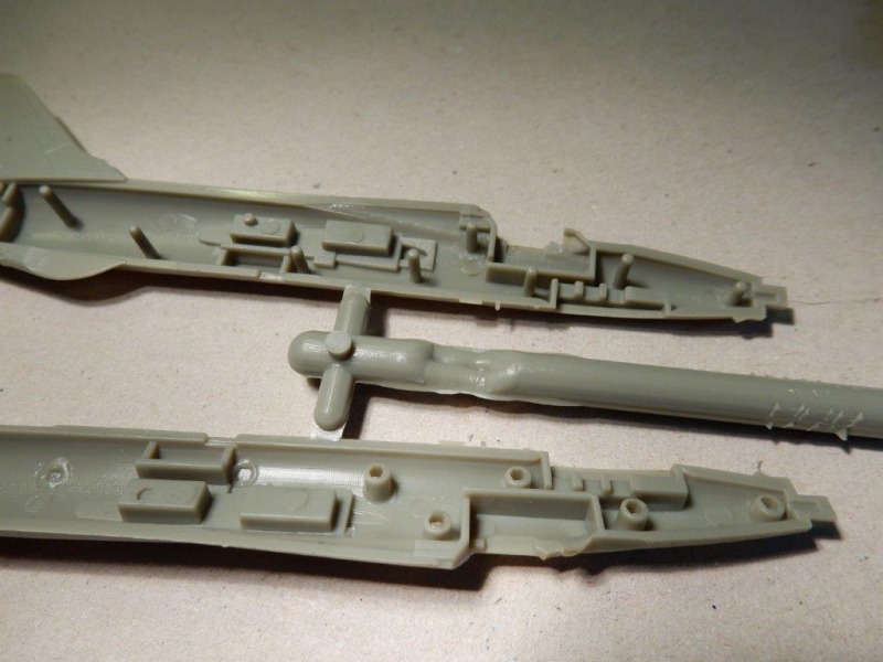 Minuspunkte gibt es für das nur sehr rudimentäre Cockpit und für fehlende bzw. unterdimensionierte Stellhebel an den Klappen am Triebwerksauslass. Ein weiteres Ärgernis ist die körnige Oberfläche fast aller Teile. Man kommt nicht darum herum, alle Flächen gründlich abzuschleifen, insbesondere wenn man die Maschine in Naturmetall bauen möchte.