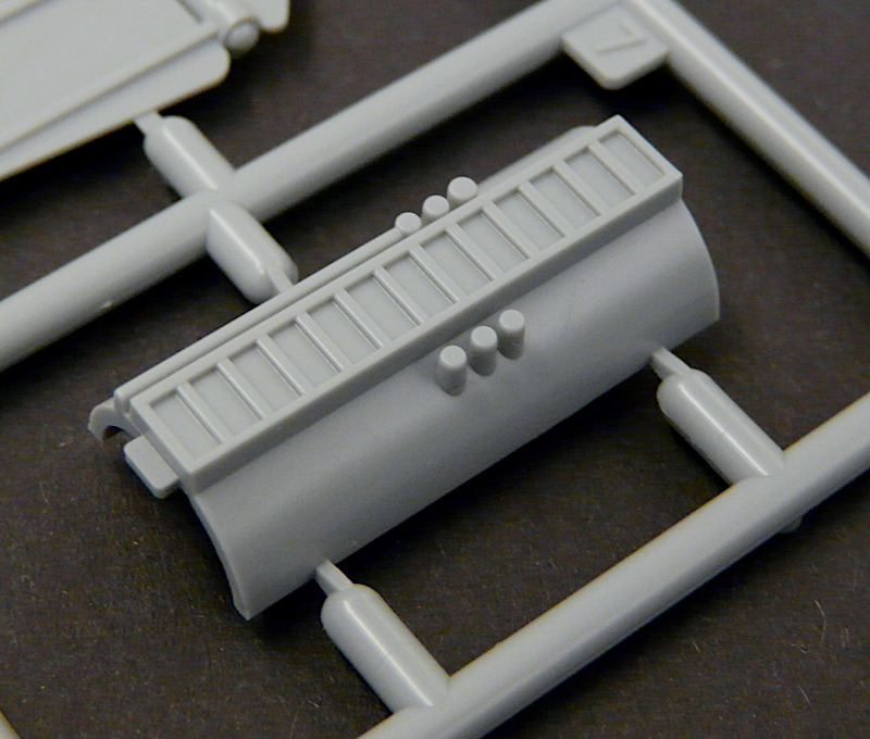 Die Ausfahrgeräte sind gut dargestellt, ebenso die Steuersäule. Besonders gut gefällt mir die Signalpfeife an der Turmfront. Die Turmreling ist doppelt vorhanden. Einmal mit und einmal ohne Persenning. Da man diese Baugruppe nicht verkleben muss, könnte man bei Bedarf auch mal wechseln. Praktisch!