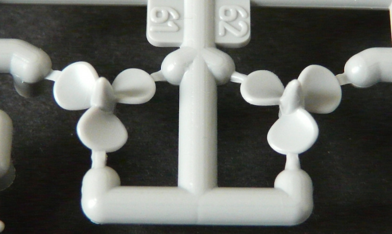Um scharfe Kanten zu garantieren, hat Zvezda sowohl die senkrechte Kante des Hecks als auch die des Bugs als separate Bauteile erstellt. Beim Bug kommt noch hinzu, dass es wahlweise eine „normale“ Bugkante und eine weit vorragende Sägekante gibt. Letztere erinnert eher an eine Art doppelte Drahtschere des Ersten Weltkrieges und verleiht dem Modell ein sehr ungewöhnliches und interessantes Aussehen. Es bleibt übrigens nicht allein bei diesem Sägebug.