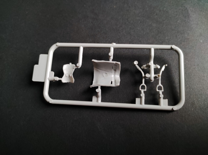 Die Qualität des Kutschers kann mich leider nicht so ganz überzeugen, erst recht nicht im Vergleich zu den Figuren von Miniart oder Dragon. Die Konturen wirken verwaschen, die Frisur hat keine oder kaum Struktur, auch bilden sich einige Spalten. So hat die linke Hälfte des Schoßes ein Extrateil, welches aber in die vorgesehene Aussparung gar nicht passt und bei anderen Herstellern gar nicht so gemacht worden wäre. Hinzu kommen dicke Formtrennnähte. Der Kutscher wirkt im Vergleich zu einer Dragon-Figur recht klein, aber wir sind ja auch nicht alle gleich groß. Der Stahlhelm ist dagegen deutlich zu klein für den Maßstab.