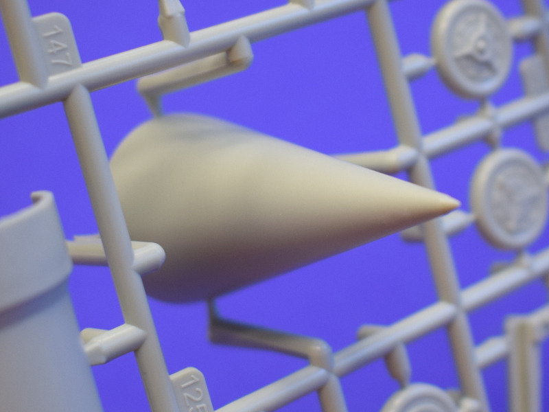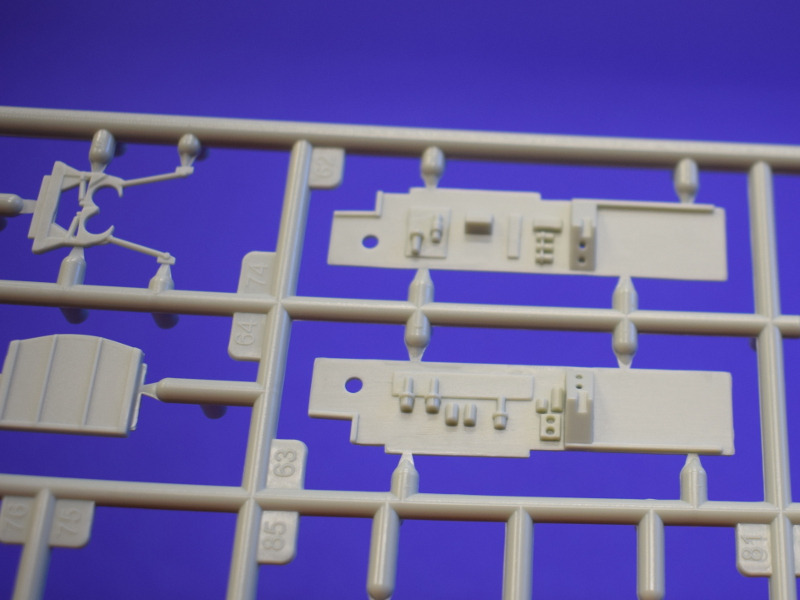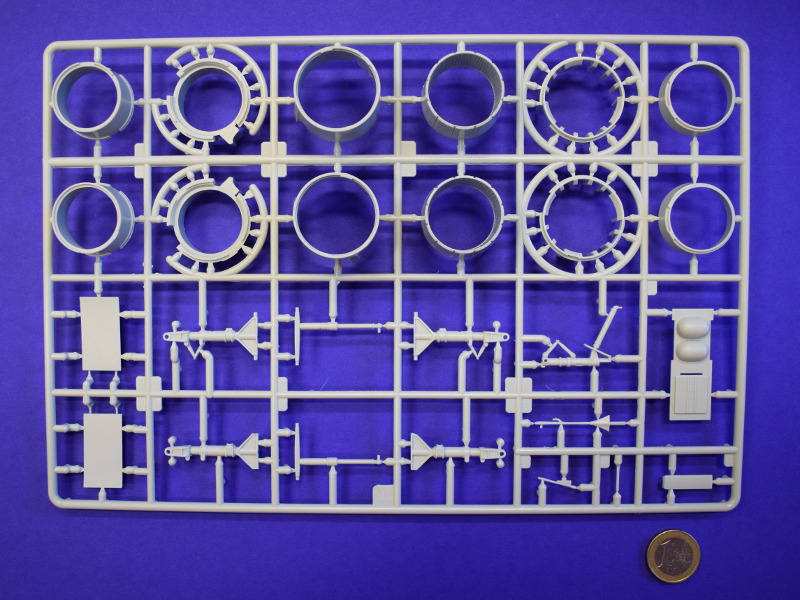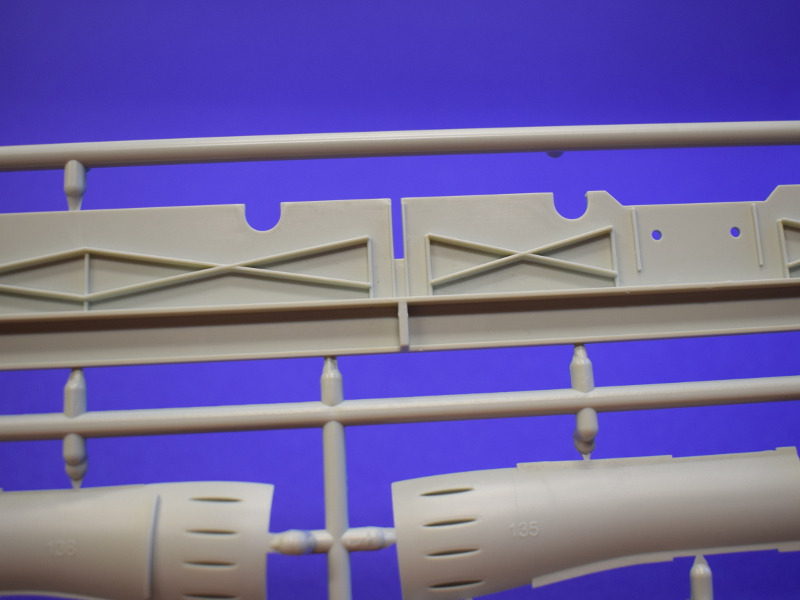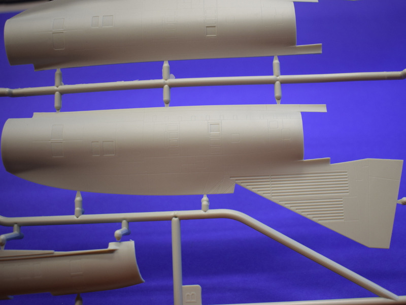 Der Bausatz kann in mehreren Optionen gebaut werden: Geöffnete / geschlossene Kabinenabdeckungen, geöffneter / geschlossener Luftbetankungszugang, ein- oder ausgefahrenes Fahrwerk, zwei Versionen der Bugspitze und die zwei separat vorhandenen J58-Triebwerke und können auf den Displayständer gesteckt werden. Die Triebwerke sind nicht dafür vorgesehen, in den Rumpf eingebaut zu werden. Dank der zusätzlichen Spanten im Rumpfinnern bleibt das 68 cm lange Modell auch später noch stabil. Die Modelloberfläche ist detailliert reproduziert und gibt die Charakteristika des Originals sehr gut wieder. Auf einigen Teilen ist die Teilenummer angegeben. So ist noch eine eindeutige Zuordnung möglich, selbst wenn das Teil bereits aus dem Spritzrahmen herausgetrennt wurde. Teile der internen Stützkonstruktion tragen den Hinweis „Front" und sind damit auch klar zuzuordnen. Die meisten Bauteile entfallen auf die Bereiche der Triebwerke. Hier wird die Montage auch etwas komplexer als bei den anderen Baustufen. Unsauberkeiten sind an den Bauteilen nur minimal zu finden. An den Triebwerksdüsen (Teile Nr. 113/114) sind die Gravuren stellenweise etwas versetzt bzw. ungerade. Aber das sollte sich korrigieren lassen. Wenn jemand mit der Lupe suchen würde, würde er bemängeln, dass die Triebwerksauslässe nur wenig detailliert sind. Gleiches gilt für die Fahrwerksschächte, die Fahrwerksbeine, die Reifen, die Cockpits und insbesondere die Schleudersitze, ebenso dass einige Lufthutzen am Rumpf nicht geöffnet dargestellt sind. Sinkstellen oder später sichtbare Auswerfermarken sind für mich am Modell augenscheinlich nicht zu erkennen. Höchstens bei den Bauteilen des Displayständers sind Schlieren auf der Oberfläche sichtbar. Aber das zählt für mich nicht zum Modell. Die Klartteile sind dünnwandig und gut durchsichtig hergestellt. Etwas, das ich als Bauteil oder als Markierung vermisse, sind die Kamerafenster auf der Unterseite der Bugspitze. Die Kameras (OBC) waren auf einem rechteckigen Modul montiert, welches in eine entsprechende Aussparung eingebaut wurde. Entsprechende Gravuren sind am Modell nicht zu finden. Weitere Kameras (IR, OOC, TROC) waren links und rechts in den Rumpfunterseite untergebracht. Hier sind Gravuren vorhanden, die diese Öffnungen zwar andeuten könnten, aber der Bauplan macht hierzu keine Angaben. Die SR-71 war ein Spionageflugzeug - also wo waren die Kameras eingebaut? Antwort gibt die u.g. Webseite.