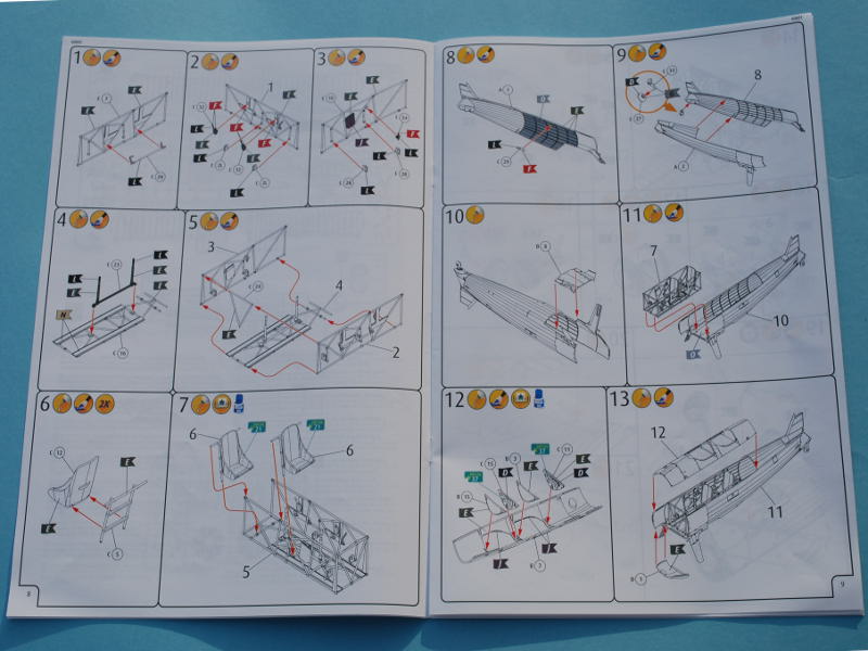 Der BauplanDer 19-seitige, farbige, Bauplan bringt den Modellbauer in 48 Baustufen zum Ziel. Neben den obligaten Sicherheitshinweisen und Basteltipps beinhaltet der Bauplan noch eine grafische Teileliste und eine Auflistung mit 15 vorgeschlagenen Farben. Auch die Positionierung der Verspannungsdrähte wird angezeigt. Der Bauplan ist einfach nachvollziehbar und sollte auch dem weniger erfahrenen Modellbauer eine gute Hilfestellung bieten.