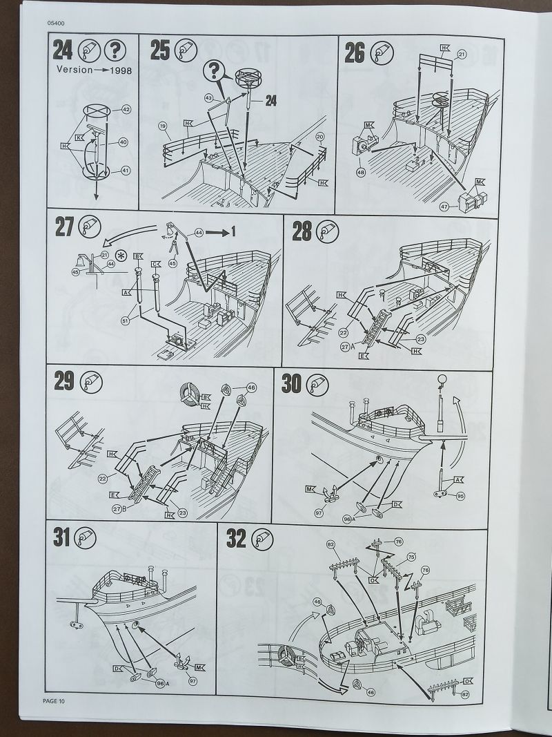Revell gibt das Niveau zum Bau des Modells mit der höchsten Stufe 5 an, was aufgrund der filigranen und damit leicht zerbrechlichen Bauteile sowie der umfangreichen Takelage zutreffend erscheint.