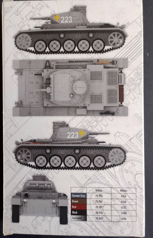 Decals und BemalungEs wird ein Fahrzeug der 2. Kompanie des Panzerregiments 1 der 1. Panzer-Division während des Polenfeldzugs im September 1939 dargestellt. Das Vorbildfahrzeug ist auch auf der ersten Seite im Original zu sehen. Die Decals sind sauber gedruckt, wir haben die typisch für den Polenfeldzug weißen bzw. gelben Balkenkreuze und die taktische Nummer 223.