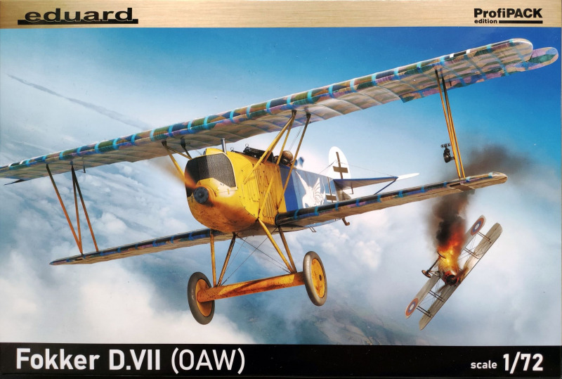 Der BausatzNeben den Fokker Dreideckern und den Albatros dürfte die D.VII das wohl bekannteste deutsche Flugzeug des Ersten Weltkriegs sein. Entsprechend gab und gibt es den Bausatz von etlichen Herstellern. In 1:72 sind als häufigste Formen die mittlerweile 60 Jahre alte Fokker von Revell, die verschiedenen Versionen von Roden aus dem Jahr 2000 und die wohl neuste und umfangreichste Form von Eduard zu nennen. Diese Form erschien erstmals 2019 und wurde mit den verschiedensten Vorbildern und Inhalten mittlerweile 14 mal aufgelegt, hier haben wir die Profi-Edition zur Fokker aus den Ostdeutschen Albatros-Werken (OAW).
