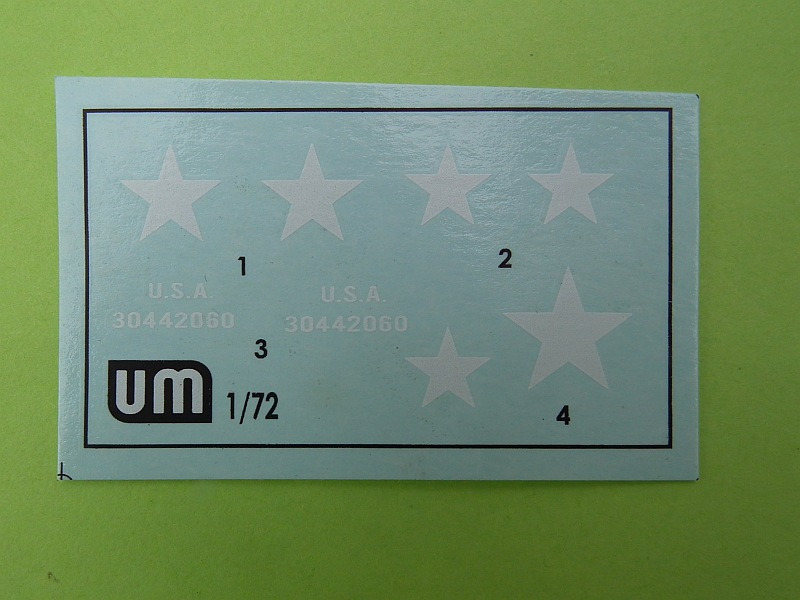 DecalsBei dem winzige Bogen ist nichts verdruckt, der Umfang der Bilder ist ausreichend. Auf den Fotos kann ich die Sterne an der Seite nicht finden. Der Stern oben neben dem Motor ist nicht dargestellt, aber als Decal vorhanden. Wo Decal Nr. 3 hin soll? Eventuell ganz hinten seitlich über dem Schutzblech? Ein bisschen Recherche schadet nicht.