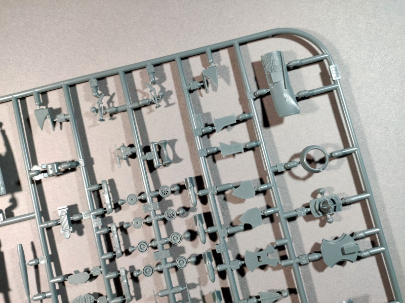 Im praktischen Stülpkarton finden wir die altbekannten drei grauen Spritzlinge und den kreisrunden Klarsichtrahmen. Diese sind von der Qualität her trotz der vielen Auflagen immer noch sehr gut, allerdings findet man so langsam hier und da die ein oder andere kleine Fischhaut. Sehr viel möchte ich eigentlich zu den Teilen gar nicht sagen, da es sich um dieselben Spritzlinge wie in dem letzten Jahr von mir vorgestellten Bausatz handelt. Natürlich werden hier aber im Detail ein paar andere Teile verbaut.