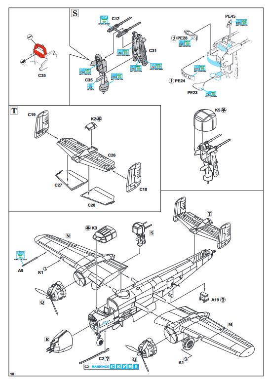 Vor dem Bau sollte man sich bereits klar darüber sein, welchen der vielen Vorschläge man bauen möchte, da einige Markierungen auch bautechnische Unterschiede haben. So trägt Markierung B seitlich am Cockpit noch vier Maschinengewehre. Löcher hierfür müssen bereits zu Beginn gebohrt werden.