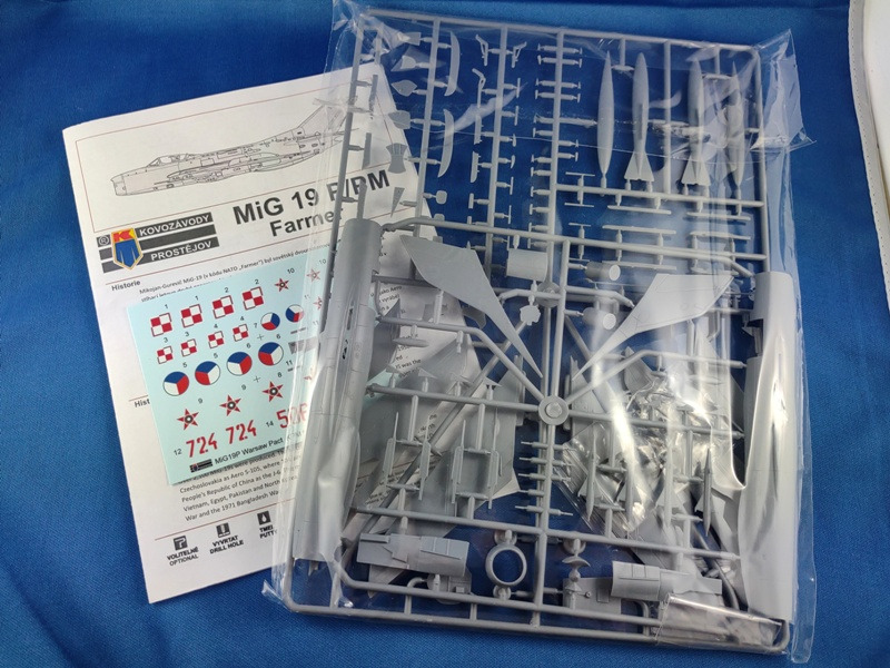 Nachdem 2019 der tschechsische Hersteller KP recht überraschend mit einer neuen Form der MiG-19S aufwartete, erschienen seitdem insgesamt zwölf Bausätze, welche die Varianten MiG-19S, P und PM sowie die chinesiche Lizenzversion Shenyang F-6 umfassen. Dabei gibt es zum Teil verschiedene Decalvarianten. Die hier vorgestellte P-Version der MiG-19 zeichnete sich durch das in in der Rumpfnase eingebaute Radar aus. Der vorliegende Bausatz selbst kommt in der typischen, aber unpraktischen, Schüttbox auf die Basteltische und besteht aus insgesamt zwei grauen sowie einem Klarsischtspritzling. Ergänzt wird das Ganze mit einem Decalbogen für drei Gestaltungsmöglichkeiten sowie einer farbigen Montageanleitung. Wie so oft überzeugt KP mit seinen Modellen hinsichtlich der Oberflächendetaillierung. So weisen die Teile feine, versenkte Gravuren auf. Lediglich an einigen wenigen Stellen wirken diese etwas verwaschen, was aber nicht weiter auffällt. Der Lufteinlauf macht augenscheinlich einen guten Eindruck. Das Cockpit wiederum wirkt sehr spartanisch und kann nur geschlossen gebaut werden. Wer das Cockpit geöffnet darstellen möchte, muss hier entsprechenden Aufwand betreiben oder sich beim sog. Aftermarket bedienen. Das Heckteil, an dem die beiden Triebwerksauslässe montiert werden, liegt als ein Teil bei und ist daher positiv zu erwähnen. Die Kanonenbewaffnung ist einfach gehalten. Hier sei ebenfalls auf den Aftermarket verwiesen. Als Zuladung liegen dem Bausatz zwei große 760 Liter-Zusatzkraftstoffbehälter sowie vier gut gestaltete RS-2U Luft-Luft-Raketen bei, welche aber nur für die Version "PM" benutzt werden können. Wie schon in meiner Besprechung zur MiG-19S erwähnt, gibt es so gut wie keine Montagehilfen in Form von Stiften. Lediglich die Tragflächen sowie die Zusatzkraftstoffbehälter weisen entsprechende Hilfen auf. Hier sei eine Trockenpassung vor dem Verkleben der Teile wärmstens zu empfehlen! Insgesamt gibt es drei Gestaltungsvarianten. Dem Produktnamen entsprechend sind es drei Nutzer der ehemaligen Warschauer Vertragsorganisation: die Volksrepubliken Bulgarien und Polen sowie die CSSR. Der Decalbogen ist sauber und sehr dünn gedruckt. Auch liegen Decals für das Cockpit bei. Wartungshinweise sind keine enthalten. Die Farbangaben werden lediglich für Humbrol und Agama angegeben. Wie bereits aus anderen Bauberichten zu entnehmen ist, ist die Zuhilfenahme von Originalfotos sowie Risszeichnungen sehr ratsam, da die Montageanleitung nicht nur z.T. widersprüchlich, sondern auch fehlerhaft ist, wie der Modellbaukollege Jürgen Willisch beim Bau seines Modells feststellen musste. Die von ihm erwähnten fehlenden "Abdeckungen" (Verstärkungsbleche links und rechts vom Cockpit) sind KEIN Muss. Hier muss man sich an dem nachzubauenden Original orientieren!