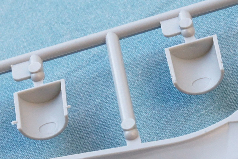 Auch beim Cockpit lässt sich der Hersteller nicht lumpen: 15 zu verbauende gut detaillierte Kunststoffteile sind schon eine Hausnummer, und die werden noch durch Ätzteile ergänzt. Der Schleudersitz wird mit Gurtzeug verfeinert, für das Armaturenbrett, das ein schönes und fein ausgeführtes Relief zeigt, gibt es eine Anzahl an Decals für die Instrumentenskalen. Auch Seitenkonsolen mit einigen wenigen Bedienelementen sind zu verbauen; hier ist eine entprechende Bemalung erforderlich, allerdings ist anzunehmen, dass wegen der eigenwillig geformten Cockpitwanne davon später nicht mehr viel zu sehen sein wird. Das Visier besteht aus einem Klarsichtteil, auf dem nach der Bemalung noch ein Decal zu platzieren ist.
