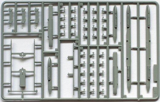 Einen nicht geringen Teil des Bausatzes machen die Außenlasten aus, nicht weniger als 400 Einzelteile entfallen auf die Waffen und die zugehörigen Halterungen. Anscheinend ist es zur Zeit "in", den Bausätzen im Großmaßstab eine unmenge Zuladung beizulegen. Was den Inhalt angeht, hat sich gegenüber der A-7E nichts geändert: