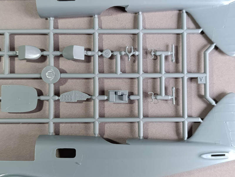Die Passung des Rumpfes ist in okay. Da bei Special Hobby oft keine Passstifte vorhanden sind, empfehlt es sich auf alle Fälle den Rumpf trockenzupassen und dann nur Stück für Stück zu kleben, um so Versatz oder größere Lücken zu vermeiden. An den Höhenflossen, welche typischerweise horizontal geteilt sind, befinden sich zwei erhöhte Auswerfermarken, welche entfernt werden müssen, damit beide Teile auch gut zusammenpassen. Kleine Lücken entstehen dennoch und müssen geschlossen werden. Ähnlich auch bei der Flügelgruppe, hier sind wieder sehr prominente Auswerfermarken, welche es zu entfernen gilt. Insgesamt bedarf es bei den Plastikteilen doch einiges zu versäubern, so befinden sich dicke Trennnähte und leichter Flash an der Motoren und anderen Kleinteilen.
