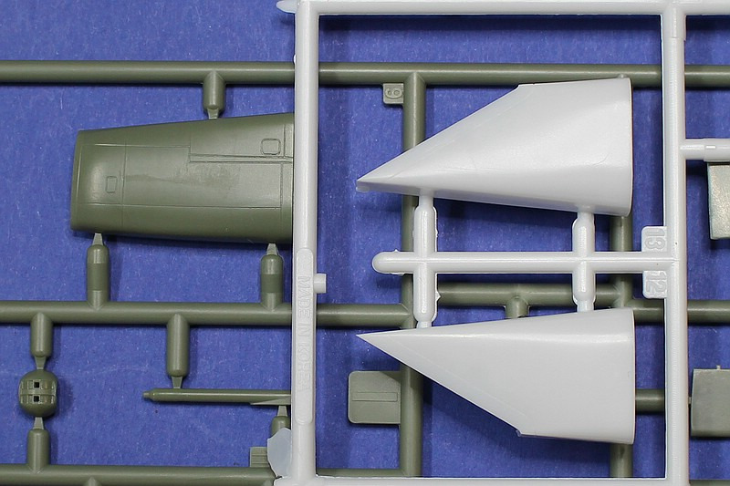 Auf dem ersten Blick sind die 242 Teile sehr detailiert dargestellt und keine Gussfehler sichtbar. Die Gravuren sind nur hauchdünn und die Hinterkanten der Tragflächen sehr scharf. Die Teilung der einzelnen Bauteile lässt den Schluss zu, dass ohne weiteres durch Ergänzung/Austausch der Spritzlinge H und I die Tu-22M3 produziert werden kann. Positiv ist das große Klarsichtteil, welches mehr als nur das Cockpit abdeckt und so den Einbau und die mögliche Nacharbeit erleichtert. Leider hat man es versäumt, die Einstiegluken wahlweise offen darzustellen, so wie es bei der Su-24 von Armory möglich ist. Im Bausatz ist ein recht üppiges Cockpit für alle Besatzungsmitglieder mit den jeweiligen Sitzen und Abziehbildern vorhanden, was so nur dem aufmerksamen Betrachter vorbehalten bleibt. Anzumerken sei, dass alle vier Sitze Sinkstellen in den Sitzflächen haben, welche ich aber nicht als problematisch ansehe. Die sehr detaillierten Hauptfahrwerkschächte bestehen aus jeweils sechs Teilen, welche mit Fahrwerken ausgestattet werden, die jeweils aus zehn Teilen ohne die Räder bestehen.