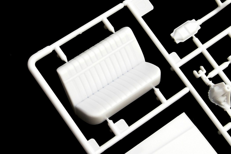 Wie schon bei den beiden Modellen zuvor liefert Revell die passende Geschichte zum Fahrzeug, damit der Modellbauer sein Modell in den richtigen Kontext zur Serie einordnen kann: "Der Chevrolet Blazer K5 des Polizeichefs von Hawkins, Jim Hopper, ist in den ersten drei Staffeln der Mystery-Serie "Stranger Things" zu sehen. Der Wagen ist Eigentum des Hawkins Police Department und Hopper fährt mit ihm in den ersten drei Staffeln zu verschiedenen bedeutenden Orten im Rahmen seiner Ermittlungen zum Verschwinden von Will Byers, der Erforschung der Tunnel unter Hawkins sowie einer ausgeklügelten Rettungsaktion zur Befreiung von Dr. Alexie während einer sowjetischen Militäroperation unter der Leitung des sowjetischen Soldaten und Auftragsmörders Grigori. Während dieser Flucht in 1985 wird der Motor des Wagens stark beschädigt, wodurch das Auto teilweise explodiert." Im Gegensatz zum Volkswagen T3 und zum Camaro handelt es sich bei diesem Bausatz um eine absolute Formenneuheit. Die Form der Spritzlinge und die Aufmachung lassen den Ursprung bei Revell USA vermuten. Dort wird auch sicher der größere Absatz zu erwarten sein. Die etwas über 120 Bauteile sind in weißem Kunststoff gespritzt und von erstklassiger Qualität. Grat, Fischhaut, Sinkstellen oder schlecht platzierte Auswerferpins sucht man hier vergebens. Alle Details - und davon gibt es hier reichlich - sind sauber gespritzt und knackscharf. Man kann hier ohne Übertreibung vom Besten seit langem reden, wenn man sich den Rest der Neuheiten der letzten Monate anschaut.