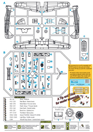 Bemalung und AbziehbilderDie Abziehbilder sind sauber gedruckt, und die australischen Hoheitszeichen sind gut und symmetrisch wiedergegeben. Neben den weiß-blauen Hoheitszeichen gibt es noch einige spezifische Einheitsmarkierungen und taktische Nummern. Was mir jedoch fehlt, sind wenigstens ein paar Abziehbilder für die Instrumente oder die Gurte. Es können zwei Maschinen gebaut werden: