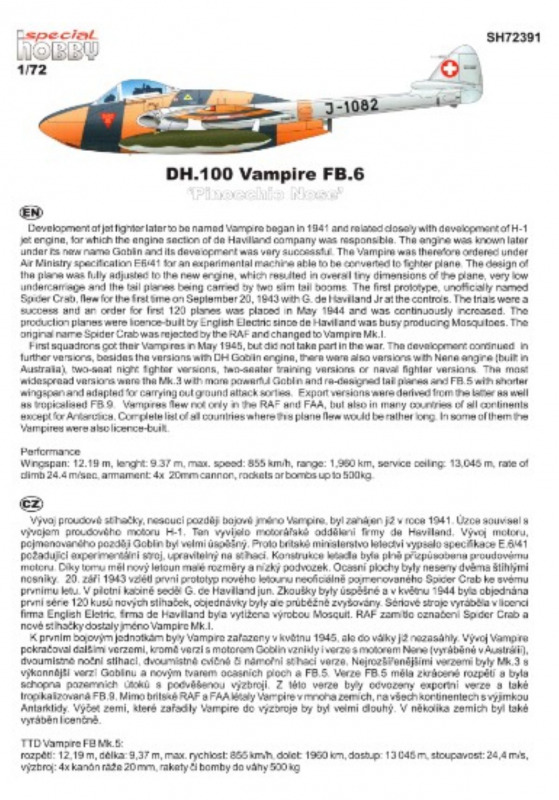 De Havilland DH.100 Vampire FB.6 "Pinocchio Nose"(Special Hobby - Nr. SH72391)