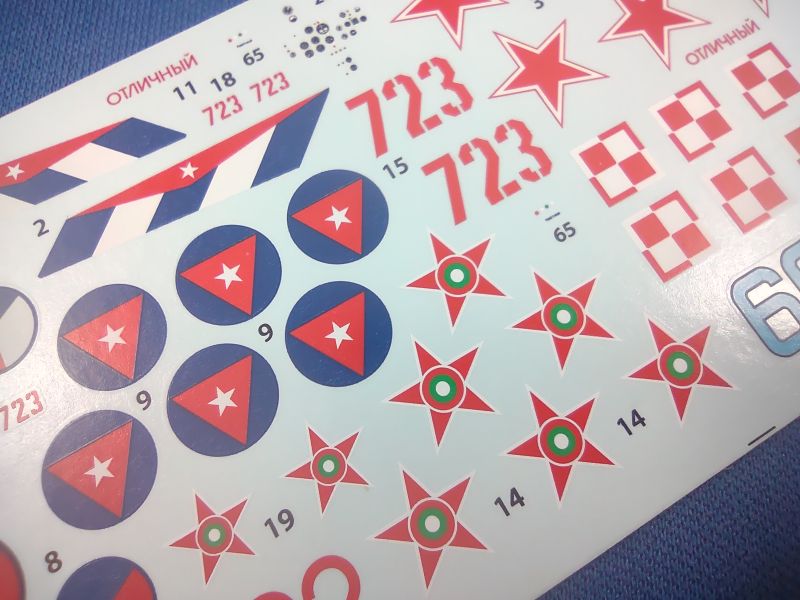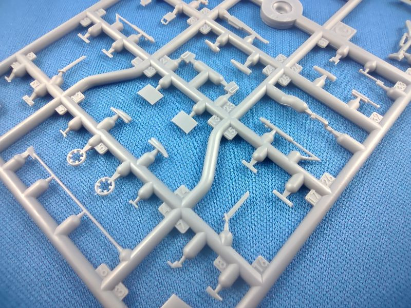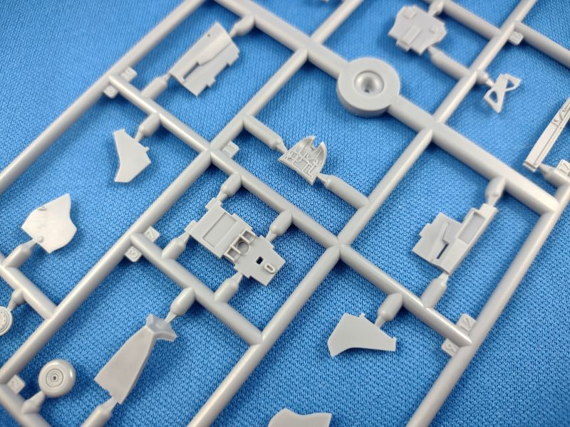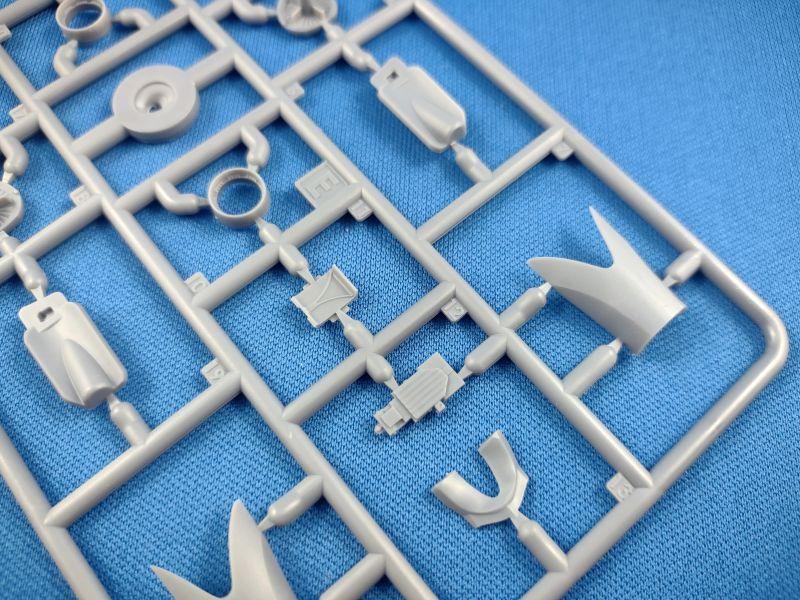 Die ersten beiden Bausätze werden als als "Advanced Kit" angeboten und beinhalten neben den jeweiligen Spritzgussrahmen, Decalbogen und Anleitung auch eine kleine Fotoätzplatine. Zudem gibt es zwischen beiden Bausätzen auch noch kleine Unterschiede in der Ausstattung. So liegen der MiG-19P zwei kleine, 3D-gedruckte, Teile für die Raketenwerfer bei. Die MiG-19PM wird stattdessen mit einem zusätzlichen Spritzgussrahmen (K) geliefert, welcher Startschienen und Luft-Luft-Raketen beinhaltet. Der vorliegende Bausatz kommt im stabilen Klappkarton zu den Modellbauern und beinhaltet neben den neun grauen und dem Klarsichtspritzling eine Fotoätzplatine, zwei Decalbogen, eine farbige Bauanleitug im A3-Format sowie die zuvor erwähnten 3D-gedruckten Teile. Insgesamt besteht der Bausatz aus 173 Plastikteilen sowie ganzen 21 Fotoätzteilen, die in 38 Bauschritten zum fertigen Modell führen! Allein hieran dürfte klar sein, dass dieser Bausatz nur etwas für den fortgeschrittenen Modellbauer ist! Spritzling A Wie bereits zuvor erwähnt, umfasst der Bau 38 Schritte. Dabei lässt die Anleitung keine Frage offen. Klassisch startet der Bau mit der Kabine sowie dem Rumpfvorderteil. Hiernach führt die Anleitung den Modellbauer zur Triebwerkssektion ehe es auch schon direkt zum Einbau in beide Rumpfhälften kommt. Danach folgen die Fahrwerkschächte, Flügelwerk und der Anbau diverser Kleinteile sowie das Fahrwerk selbst. Die Luftbremsen können wahlweise im geöffneten oder geschlossenen Zustand dargestellt werden. Zum Schluss kommen noch die Außenlasten dazu. Das Kabinendach kann ebenfalls wahlweise geöffnet oder geschlossen dargestellt werden. Als Außenlasten liegen, wie beim Original, je zwei Außenzusatztanks sowie zwei Werfer für ungelenkte Raketen bei. Der Modellbauer hat die Möglichkeit, aus fünf Gestaltungsmöglichkeiten (Tschechoslowakei, UdSSR, VR Polen, VR Bulgarien und Kuba) auszuwählen. Clear Prop! gibt im Gegensatz zu seinen MiG-23-Bausätzen nur noch ein Farbsystem an: Mr. Color. Die beiden Decalbögen sind allesamt sauber, detailliert und ohne Versatz gedruckt. Jeder der zwei Decalbögen ist thematisch sortiert: Nationalitätenkennzeichen und taktische Nummern einerseits, Wartungshinweise sowie Hinweiskennzeichnungen andererseits. Bilder des Testbaus der MiG-19PM gibt auf Britmodeller. Sie machen nicht nur einen guten Eindruck, sondern auch Lust zum Bauen.Spritzling H Darstellbare Maschinen: