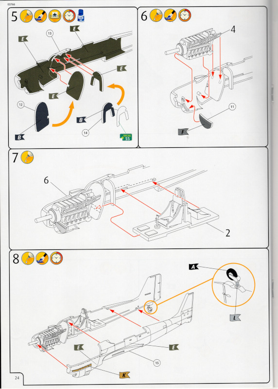 Die BauanleitungMit 48 Seiten im Format A4 ist die Bauanleitung recht umfangreich. Bei vier zu bauenden Modellen ist das aber auch kein Wunder. Bis auf eine andere Hintergundfarbe sind die 21 Bauabschnitte identisch zum Originalbausatz. Das trifft auf alle Zeichnungen der vier Bausätze in diesem Karton zu.