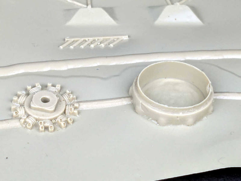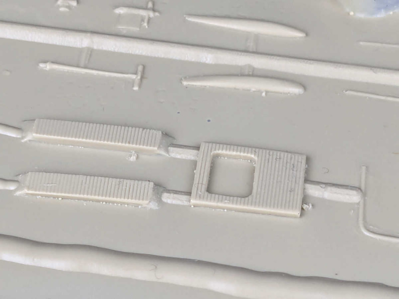 Der Bausatz kam zu meiner Überraschung in einer relativ goßen Verpackung. Diese ist aus dickem Karton gefertigt und auch sehr stabil. Kein Vergleich zu den heute üblichen Boxen. Die Überraschung lässt sich aber noch steigern, denn wer die üblichen Resinteile mit mehr oder weniger heftigen Angüssen erwartet, wird staunen. Die Resinteile befinden sich auf / in zwei Resinplatten. Bei verschiedenen Herstellern habe ich diese Technik schon bei den Kleinteilen gesehen, aber RT hat alle Teile in diese Plattenform gebracht. Mal schauen, wie gut die Einzelteile sich aus diesen Platten lösen lassen. Bei dem filigranen Fahrwerk und den Antennen stelle ich mir dass recht kompliziert vor. Trotz oder vielleicht gerade wegen der ziemlichen ungewöhnlichen Fertigungstechnik ist die Qualtität der Einzelteile sehr gut. Die Wellblechstruktur ist sehr schön widergegeben. Auch auch die Kleinteile zeigen feine Strukturen und Details. Allein die Räder fallen da etwas aus dem Rahmen. Hier sollte man auf Alternativen aus der Restekiste zurückgreifen. RT hat den Bausatz so konzipiert, dass daraus sowohl die Junkers W 33 als auch die W 34 gebaut werden kann. Somit findet man die beiden Bugsektionen für den Reihen- und den Sternmotor einschließlich der entsprechenden Auspuffanlagen. Außerdem hat man noch die Alternative zwischen der legendären Maschine "Bremen" und der normalen W 33. Dafür gibt es unterschiedliche Querruder und Tragflächenenden. Auch findet man zwei verschiedene Propeller für die verschiedenen Ausführungen. Was man aber vergeblich sucht, ist die Innenausstattung. Es gibt weder Sitze für die Crew noch für die Passagiere. Und auch sonst ist nichts vorhanden, was im Cockpit verbaut werden könnte. Hier ist also Eigeninititative gefragt.