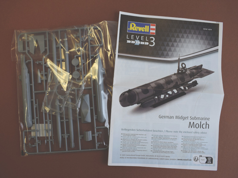 Der Molch im ModellbauDieses Kleinkampfmittel gab es zuerst von verschiedenen Herstellern in 1:35. Der kleinere Maßstab 1:72 wurde erst später von anderen Firmen bedient. Und hier war ICM der erste Hersteller, der einen Spritzgussbausatz in höherer Stückzahl auf den Markt brachte. Der BausatzDie Erstauflage des Bausatzes von ICM stammt aus dem Jahr 2023. Revell legt lediglich eine neue Bauanleitung mit bei. Aber zuerst fällt auf, dass Revell nicht mehr den Schüttkarton verwendet, sondern eine aufklappbare Verpackung. Sehr gut!! Der Spritzrahmen weist keine augenscheinlichen Fehler auf. Möglicherweise sind die Schweißnähte auf der Außenseite etwas zu stark ausgeprägt, aber das mag nur mein subjektives Empfinden sein. Sehr bemerkenswert ist, dass der Steuerraum des Molch angedeutet ist. Man hat auch die Option, die Einstiegsluke offen darzustellen. Aber vermutlich wird man später kaum etwas von der Inneneinrichtung erkennen. Wer sich Aufwand sparen möchte, schließt die Luke. Die Torpedos sind ganz gefällig detailliert. Wer es hier aber eine Nummer feiner bevorzugt (beispielsweise bei den Propellern) greift auf den Resin-Zubehörmarkt zurück. Der Displayständer ist funktional. Aber so ein kleines Modell in 1:72 verlangt förmlich nach der Darstellung in einem kleinen Diorama entweder an Land oder zu Wasser.