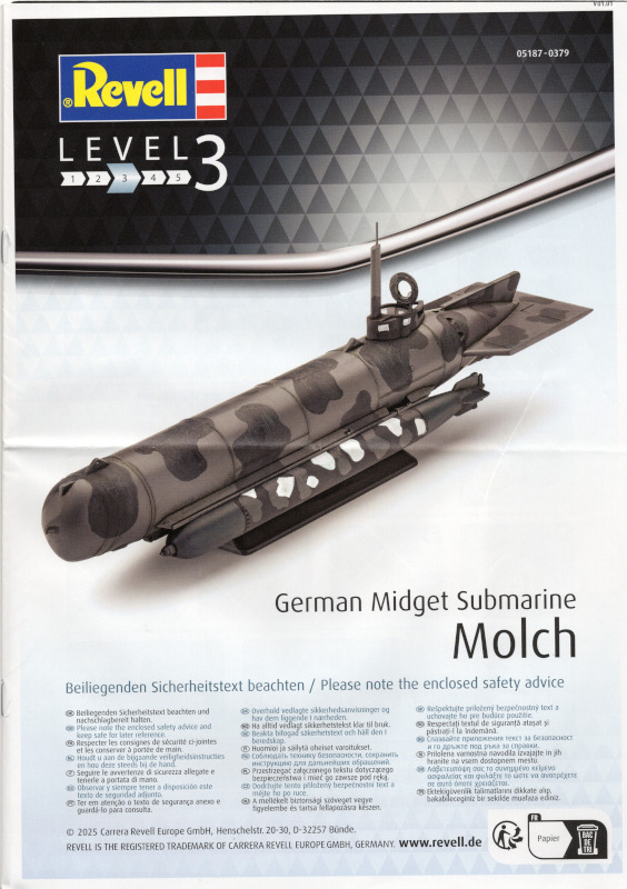 Anwendung: Ein Level 3-Bausatz mit einer Altersempfehlung ab 10 Jahren - also durchaus tauglich für Modellbaueinsteiger. Fazit:Weil Revell den Molch jetzt in sein Sortiment aufgenommen hat, ist das Modell leicht u.a. in Deutschland erhältlich. Aber die Erstauflage (und das Set zusammen mit dem Seehund) von ICM ist ebenfalls noch erhältlich. Dazu ist er etwas günstiger, hat vier Darstellungsversionen und einen Decalbogen. Das sind alles Argumente, die für die ICM-Version sprechen. Auf der Webseite von Revell ist zu lesen, dass ein Markierungsbogen enthalten ist - ist er aber definitiv nicht. Bei anderen Bausätzen habe ich in der Vergangenheit ähnliche Abweichungen bei den Beschreibungen auf der Webseite gefunden. Das sind unnötige Fehler! Weitere Infos:Diese Besprechung stammt von Bernd Heller - 08. November 2025 © 2001-2025 Modellversium Modellbau Magazin | Impressum | Links |