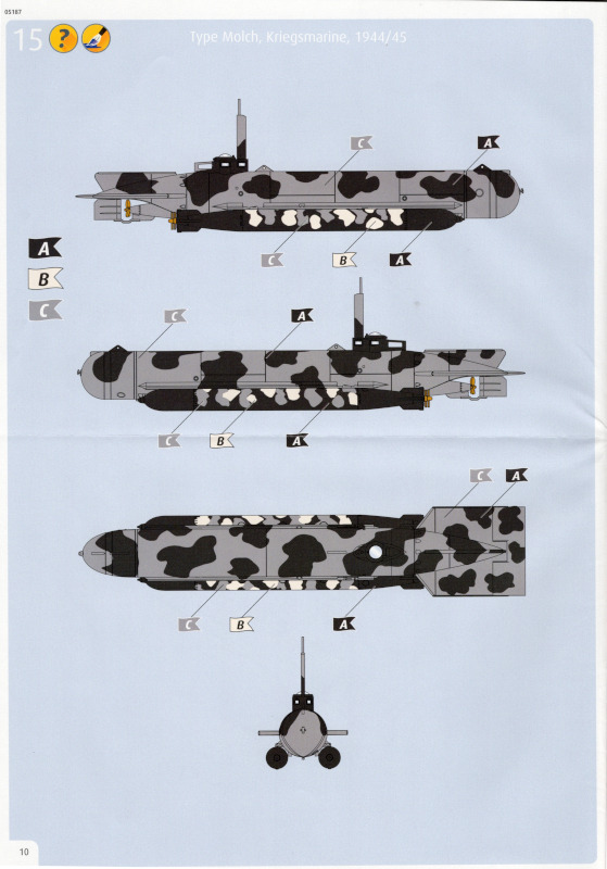 Die BauanleitungDie Anleitung hat das Format A4 und besteht aus elf farbig gedruckten Seiten. 16 Baustufen führen bis zum fertigen Modell. Die Zeichnungen haben eine ausreichende Größe und sind leicht verständlich. Revell gibt fünf Farben für die Lackierung an. Revell legt dem Bausatz keinen Markierungsbogen bei. Das wäre nicht weiter tragisch, doch eine der beiden Lackierversionen trägt am Bug eine Art Haifischmaul. Hier soll wohl die Vorlage aus der Bauanleitung ausgeschnitten und als Schablone verwendet werden. Ob das bei den weniger erfahrenen Modellbauern zielführend ist, wage ich zu bezweifeln. Aber bei der Lackierung kann man auch auf andere Vorlagen zurückgreifen oder etwas kreativ werden. ICM hat seinem Bausatz einen Markierungsbogen beigelegt. Vielleicht wollte Revell hier die Kosten dafür sparen? Darstellbare Einheiten:
