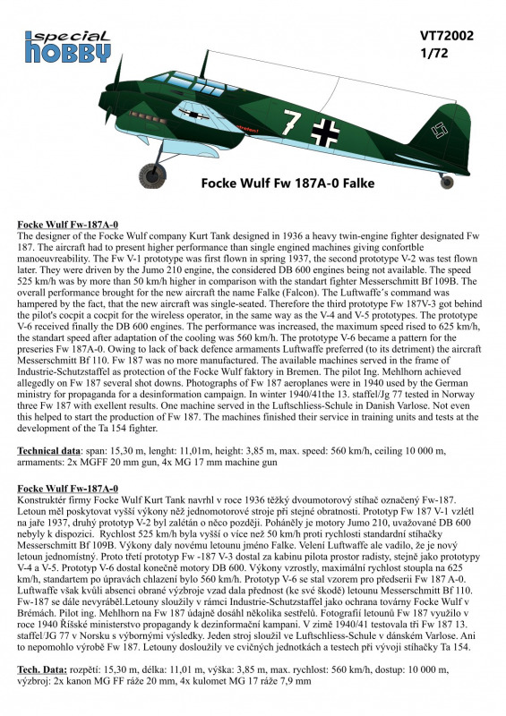 Focke Wulf Fw 187 A-0 Falke(Special Hobby - Nr. VT 72002)