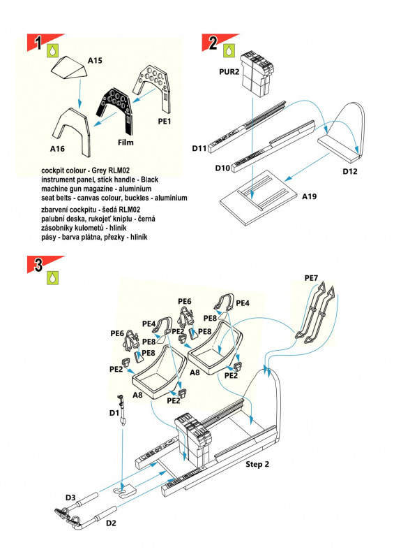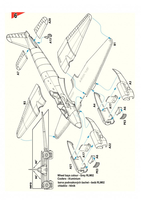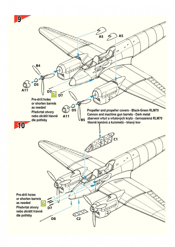 Die Bauanleitung......wurde neu erstellt und besteht jetzt aus zehn farbig gedruckten Seiten im Format A5. Die Zeichnungen haben die gleiche Größe wie in der Erstauflage. Subjektiv sind sie vielleicht etwas klein, aber sie sind noch verständlich. Dort sind auch zusätzliche Farbangaben enthalten und Hinweise, wo Löcher für die Bewaffnung zu bohren sind. Diese Arbeit dürfte etwas fummelig sein.