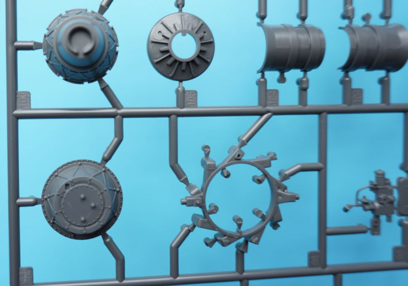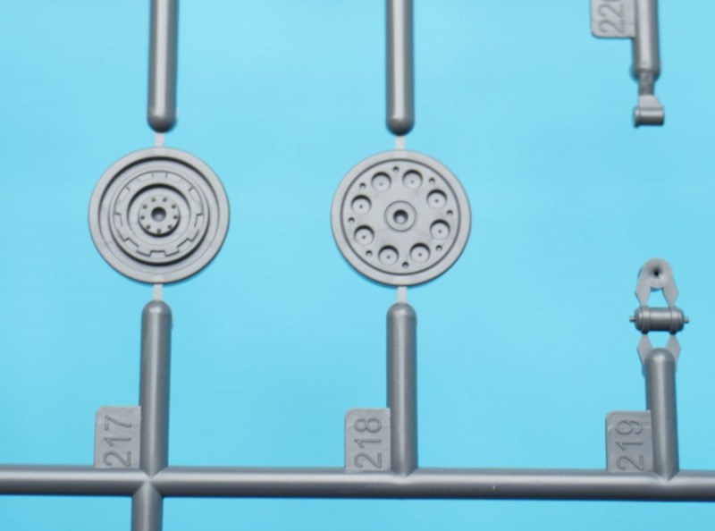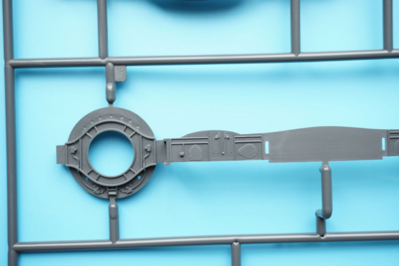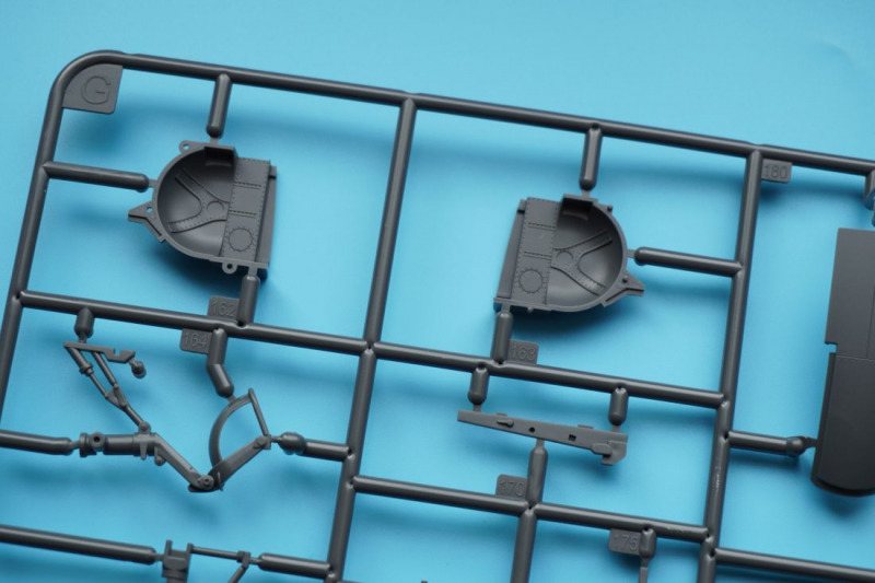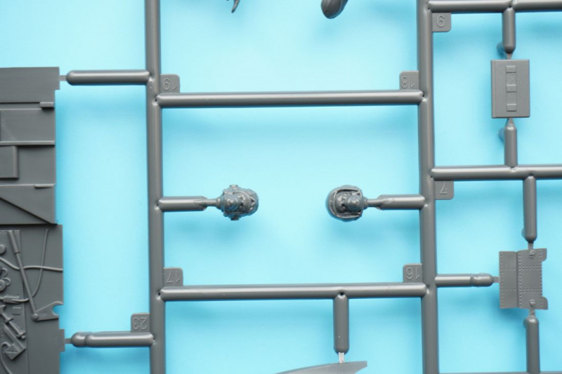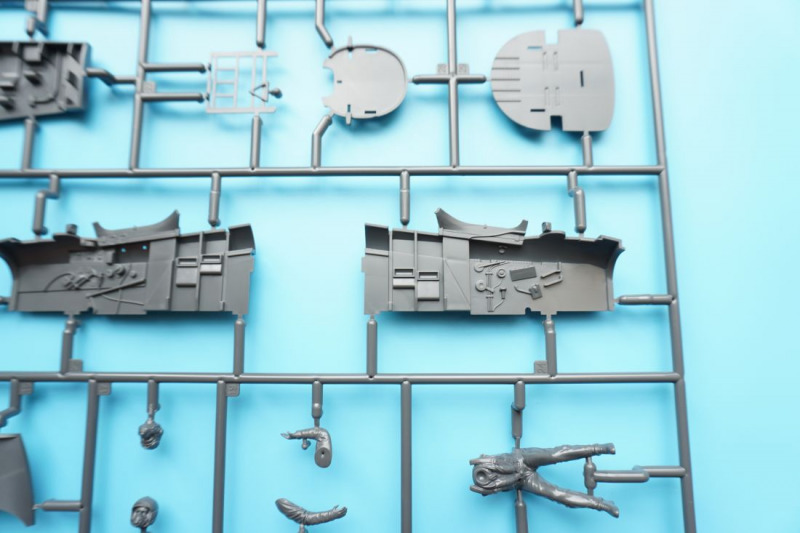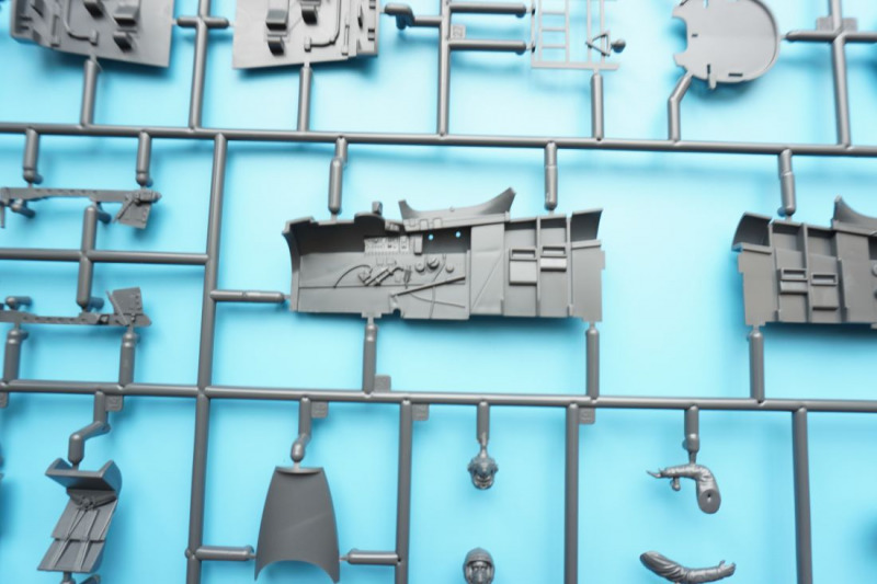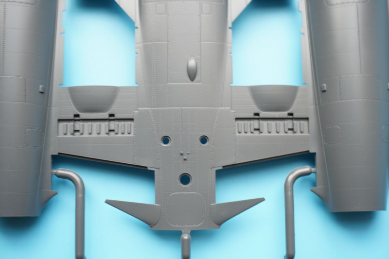 Und was ist das?Beim näheren Betrachten der Kunststoffteile fallen sofort zahlreiche knackige Panellines und messerscharfe Gravuren auf den Bausatzoberflächen ins Auge. Zudem ist das ganze Modell von unendlichen, realistisch wirkenden Nietreihen überzogen, bei denen sich Rundkopfniete und Senkniete je nach Modellbereich abwechseln. Da schlägt das Modellbauerherz höher! Es sind diese "scharfen" Gravuren bei Revells Flugzeugmodellen im Maßstab 1:32, die ich seit der Herausgabe der Hawker Hunter vor mehr als zwanzig (!) Jahren vermisst habe, und die leider auch bei Revells WW2-Repliken in 1:32 von Bf 109, Fw 190 und He 219 nicht vorhanden waren. Dort sind es eher verwaschen wirkende Modelloberflächen mit nur spärlicher Nietdarstellung. Und nun sind sie wieder da, diese klaren Gravuren, und daneben sogar noch einige weitere erfreuliche Features: auf den Panels der Kanonencowlings ist die manchmal beim Original verzogene/eingedellte Blechhaut sehr gut erkennbar. Diese als "strained surface" bezeichnete Verformung von Metalloberflächen ist hier erfreulich realistisch dargestellt. So eine Oberflächenbeschaffenheit war sonst nur bei den Großmodellen von Airfix (Typhoon, 1:24) oder Border Models (Lancaster, 1:32) zu finden und galt seinerzeit als "revolutionär" bei einem Mainstream-Polystyrolkit. Einige Details des Bausatzes