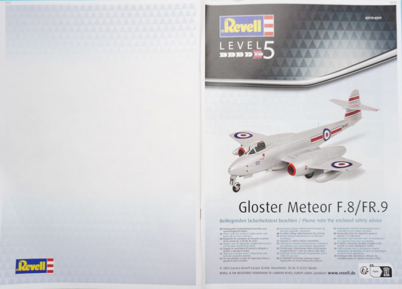 Der Werbetext von RevellDer nun folgende Text stammt von der Revell Website und strotzt mal wieder vor Superlativen, wodurch Revells Texte seit einiger Zeit gekennzeichnet sind. Also Vorsicht - beim Lesen bloß nicht die Bodenhaftung verlieren und abheben! Sonst verpasst ihr diese Bausatzbesprechung noch... "Gloster Meteor F.8-FR.9 – Sonderedition mit exklusiven Features Du bist ein Fan von historischen Flugzeugen und möchtest ein einzigartiges Stück Luftfahrtgeschichte in Deinem Modellbau-Regal haben? Die Gloster Meteor F.8-FR.9 Sonderedition löst dieses Problem auf die bestmögliche Weise: Mit unglaublicher Detailtreue, exklusiven Zubehörteilen und einer limitierten Auflage von nur 3000 Stück bietet sie Dir die Chance, ein Modell zu besitzen, das Sammlerstücke und Modellbaukunst auf ein neues Level hebt. Mit dieser Ausgabe kannst Du Dein Hobby auf die nächste Stufe bringen – und das schneller als je zuvor! Besondere Merkmale