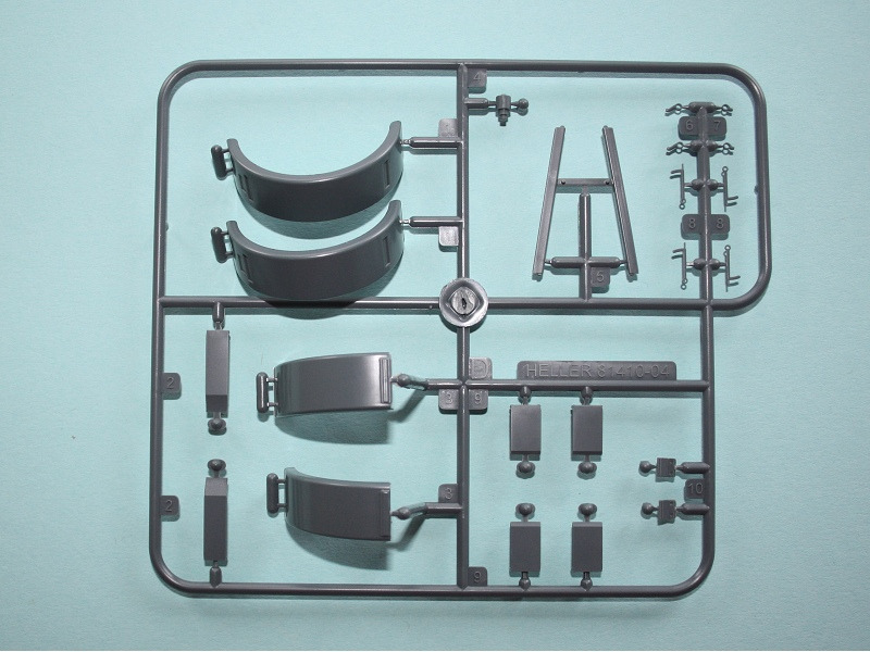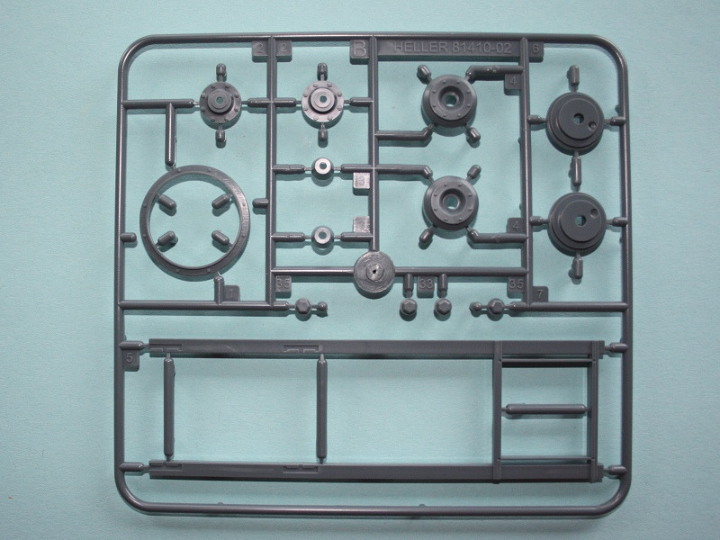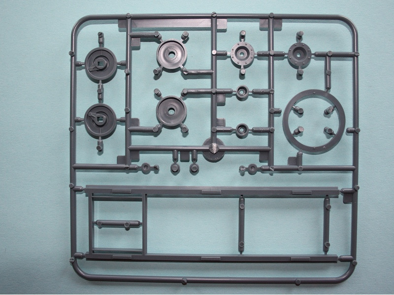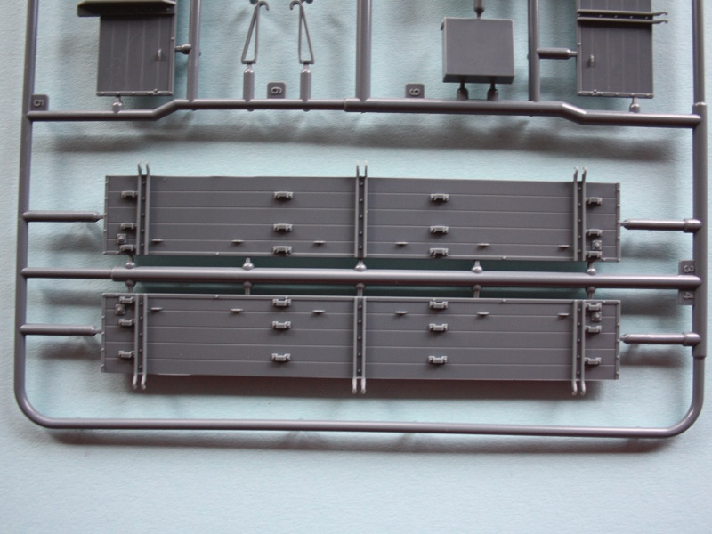 Die BauteileDer Bausatz ist sehr fein detailliert (89 Teile) und auch der Spritzguss ist auf der Höhe der Zeit. Fischhaut und Auswerfermarken sind nicht vorhanden. An einigen Teilen sind leichte Sinkstellen vorhanden, stark betroffen davon ist die Oberseite der Ladefläche. Doch wer Nutzfahrzeuge baut, wird dieses Problem von anderen Kits kennen, sie sind oft an Stellen zu finden, wo an der Unterseite Rahmenteile anmodelliert sind. Dieses Problem bekommt kaum ein Hersteller in den Griff!