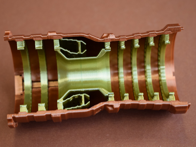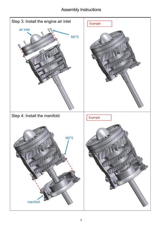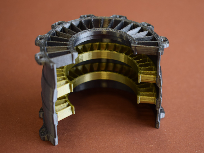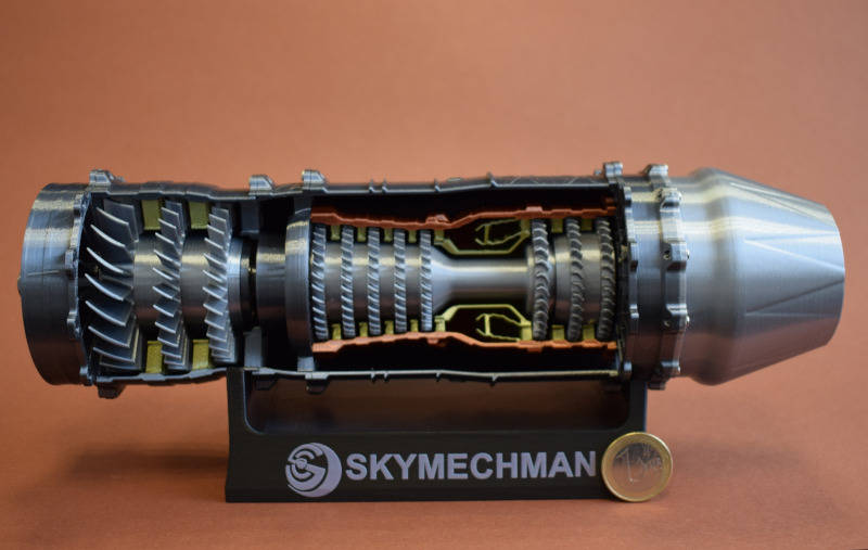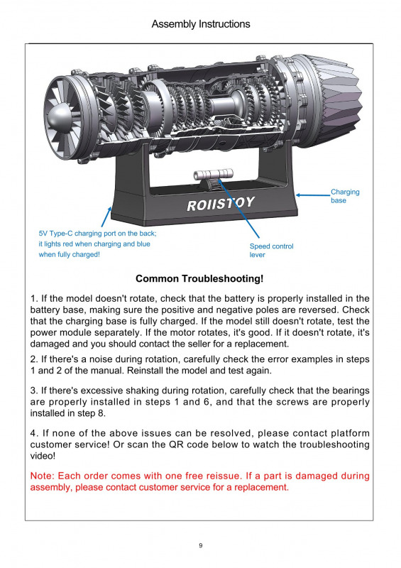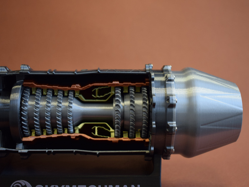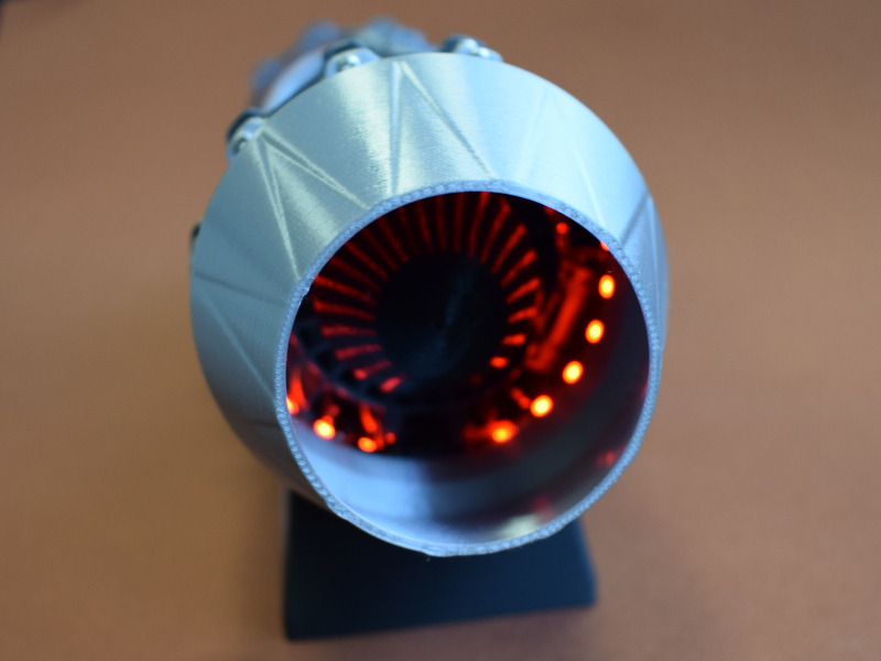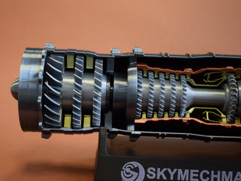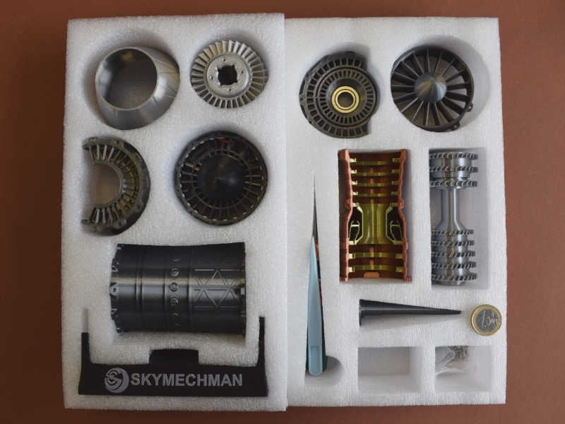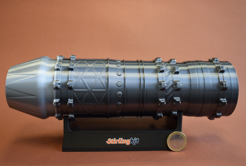 StirlinkitDie chinesische Firma Stirlingkit ist in Deutschland oder Europa noch weitgehend unbekannt. Sie stellt Motorenbausätze für den RC-Bereich her (darunter auch Benzin/Diesel-Motoren und Dampfantriebe). Aber auch Funktionsmodelle von verschiedenen Triebwerken für den Einsatz in der Schule oder bei der technischen Ausbildung sind im Programm. Auf der Webseite ist die ganze Bandbreite des Angebotes zu sehen. Die Firma wurde 2018 in Hong Kong gegründet und hat momentan über 100 Mitarbeiter. Der BausatzBeim genaueren Hinsehen erkennt man die Rillen des 3D-Druckes, die aber nach der Montage größtenteils verdeckt sind. Mit den Schaufelrädern ist die Funktion des Triebwerkes nur grob dargestellt und detailliert - für ein Funktionsmodell aber völlig ausreichend. Für die Bewegung sorgt der Displayständer mit dem Batteriestrom. Dieser wird über Kontakte an die Welle weitergeleitet, die die Schaufelräder bewegt und auch die LED-Beleuchtung am Heck des Triebwerkes mit Strom versorgt. Die einzelnen Bauteile werden verschraubt. Hier ist darauf zu achten dass nicht zu viel Druck ausgeübt wird, denn sonst wird die Schraube überdreht und findet keinen Halt mehr.