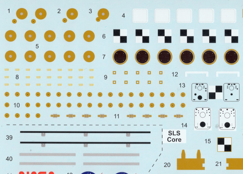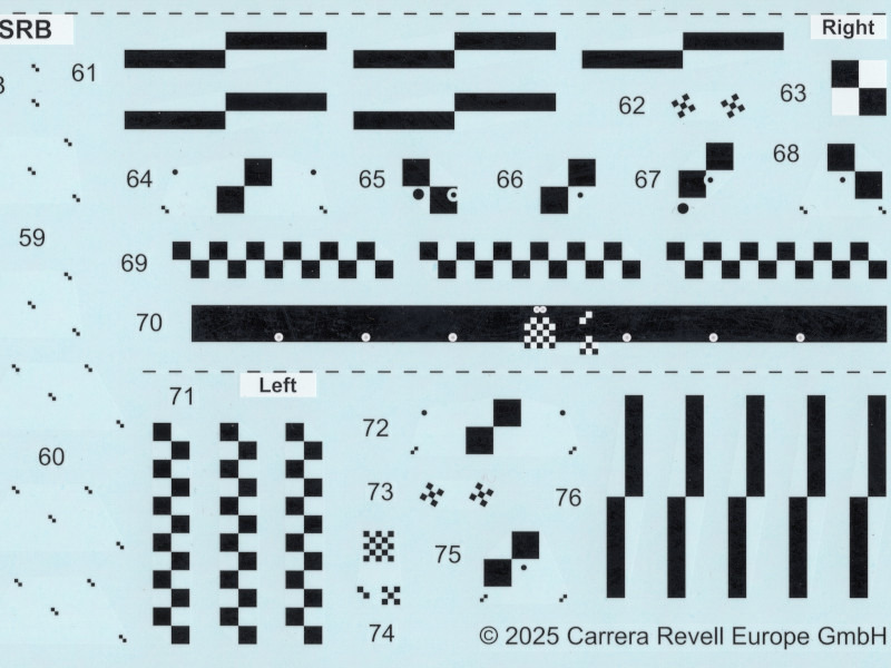 Der Markeirungsbogen......hat fast die Größe von einem A4-Bogen und ist von Cartograf hergestellt. Diese Firma ist bekannt für qualitativ hochwertige Produkte. Die Nassschiebebilder sind matt und versatzfrei gedruckt. Eine Vielzahl von Details warten darauf, auf Rakete, Booster und den Displayständer aufgetragen zu werden.
