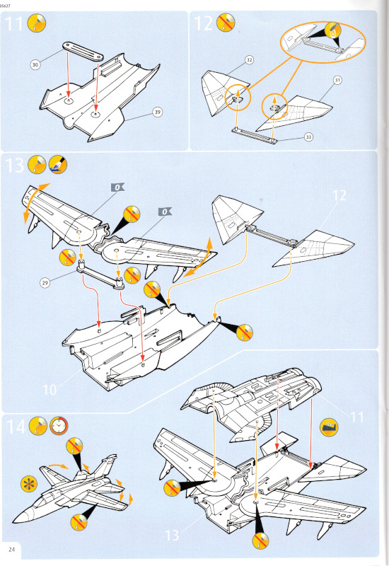 Der MarkeirungsbogenDer Markierungsbogen wurd neu für dieses Set hergestellt. Er ist fast A4 groß und augenscheinlich von sehr guter Qualität. Die Markierungen sind glänzend und dünn gedruckt. Sehr viele Wartungshinweise je Modell warten darauf, verarbeitet zu werden. Der Eurofighter mit der 30+68 konnte bereits mit dem Geschenkset „60 Jahre Luftwaffe" mit Sonderlackierung in 1:72 dekoriert werden. Im vorliegenden Set kann er in seiner Standardlackierung gebaut werden. Der Tornado mit der 43+50 und der Phantom II mit der 38+74 konnten ebenfalls mit dem o.g. Geschenkset markiert werden.